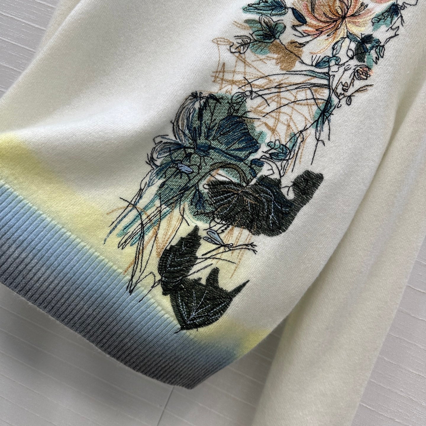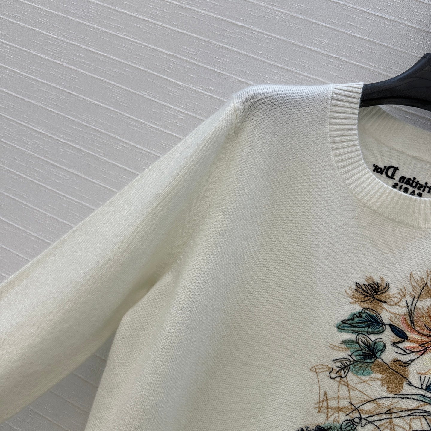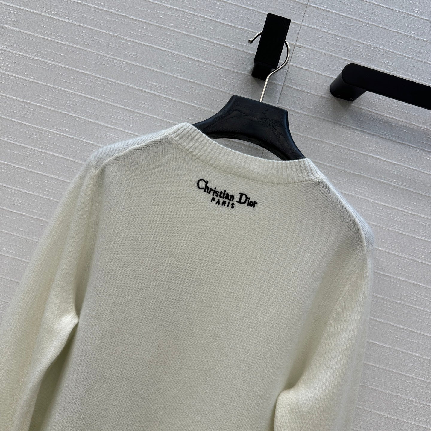 CD Embroidered Logo Sweater Beige Wool Cotton