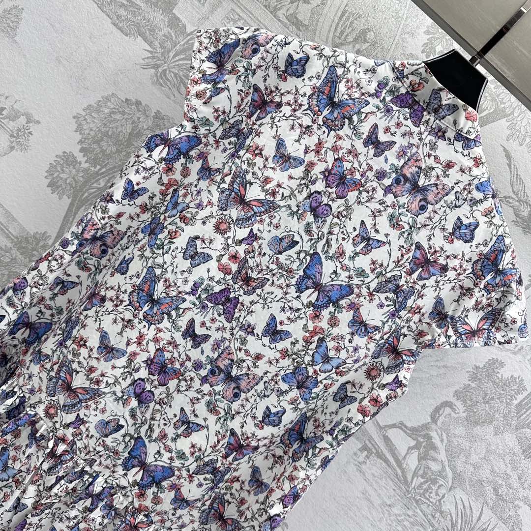 CD Short Dress White Cotton Muslin with Blue Butterfly Motif