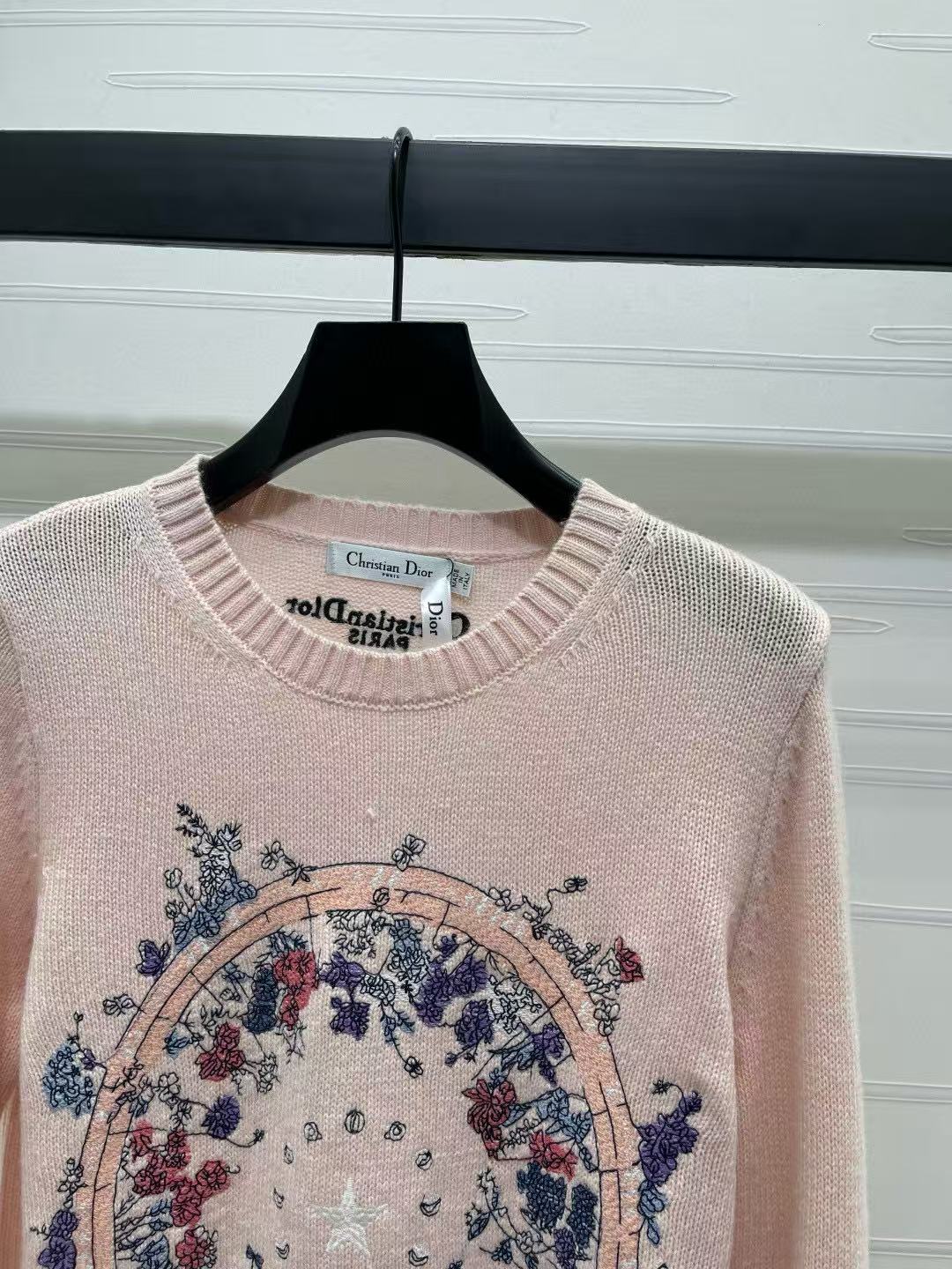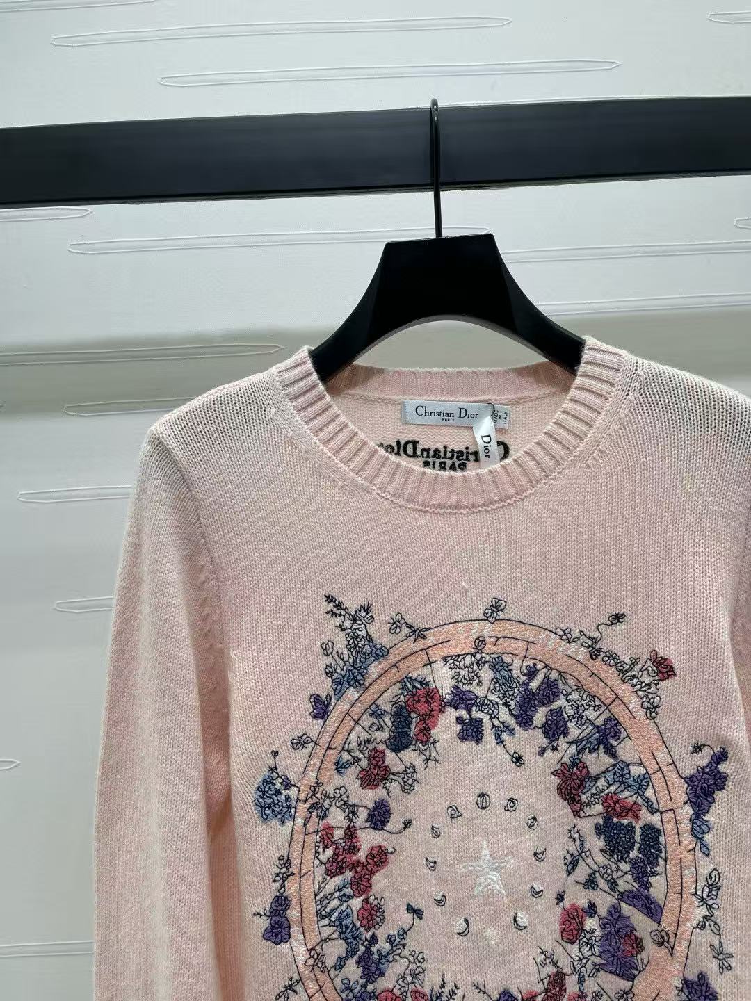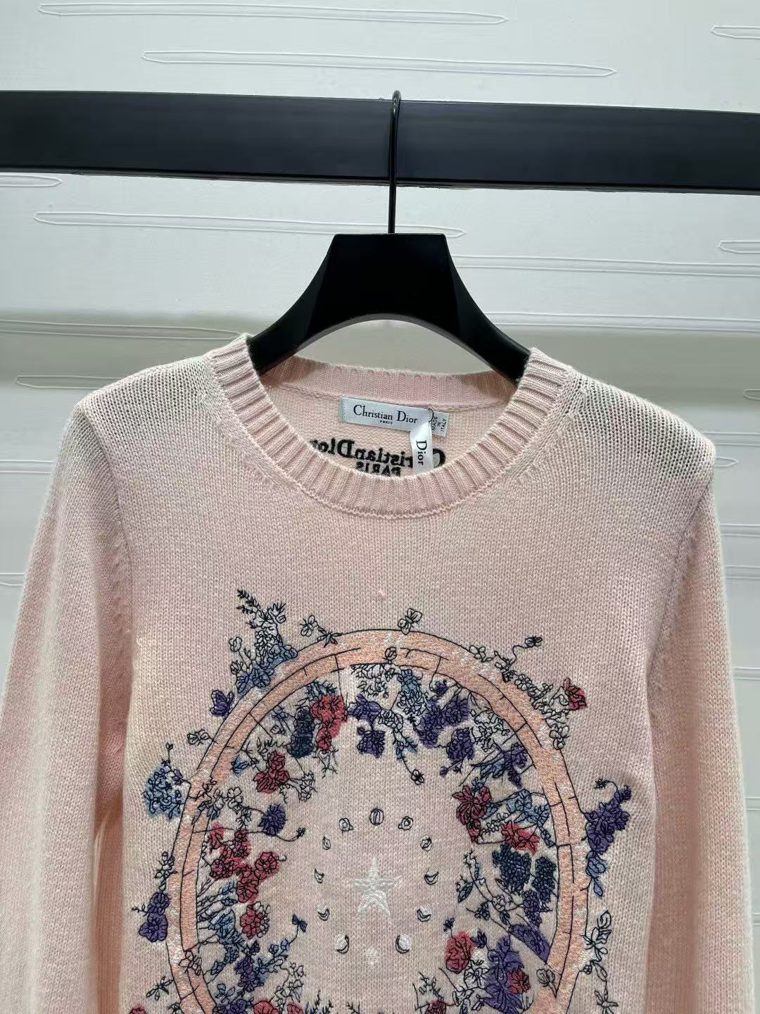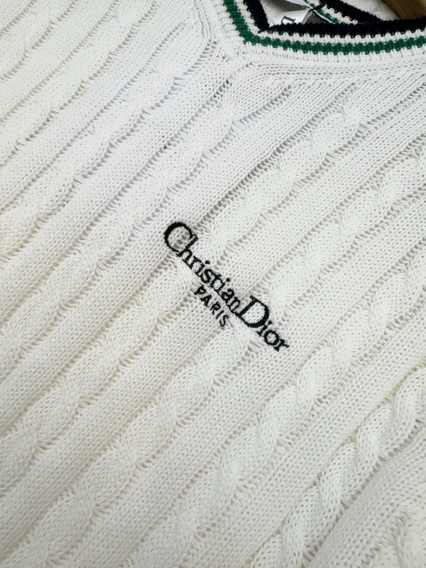 CD Embroidered Logo Sweater Beige Wool Cotton