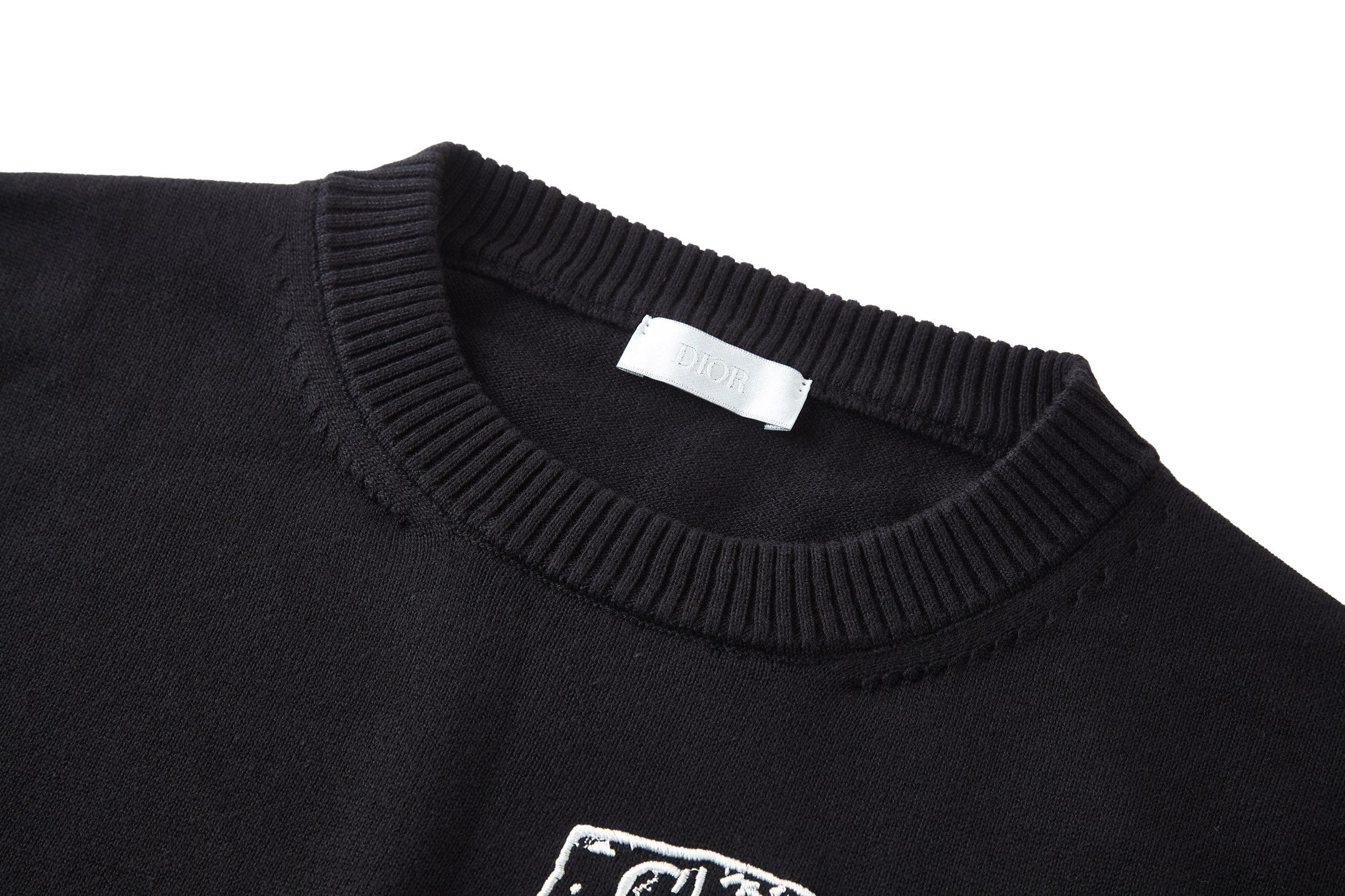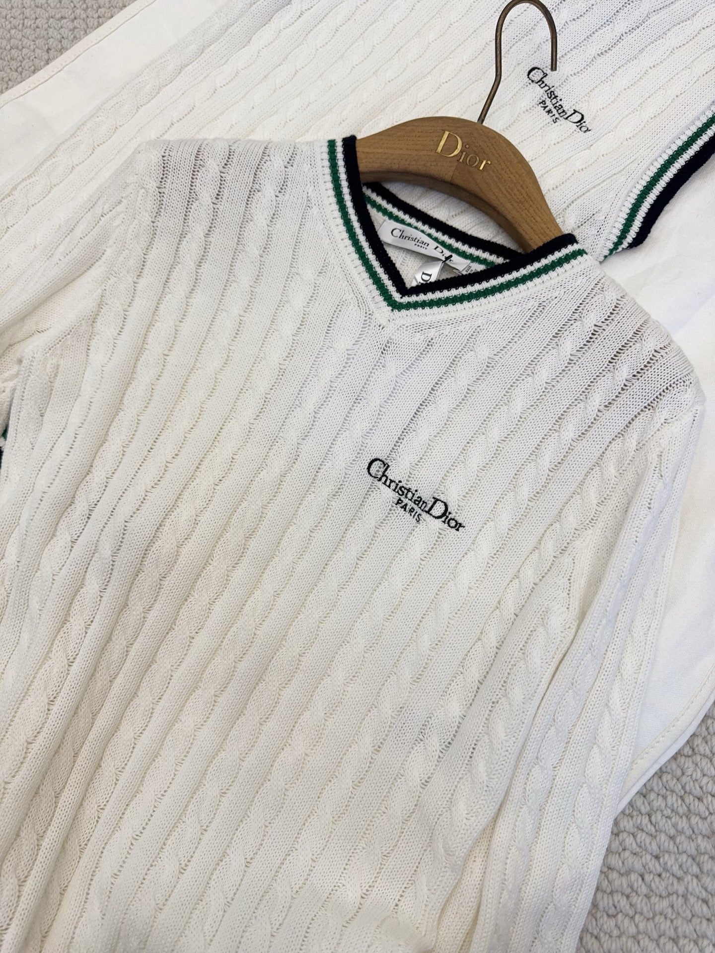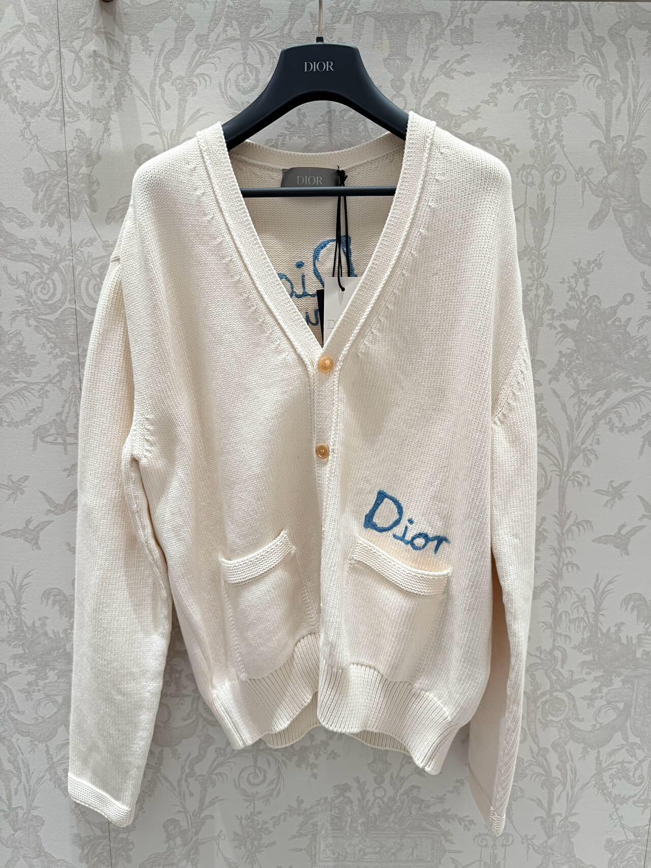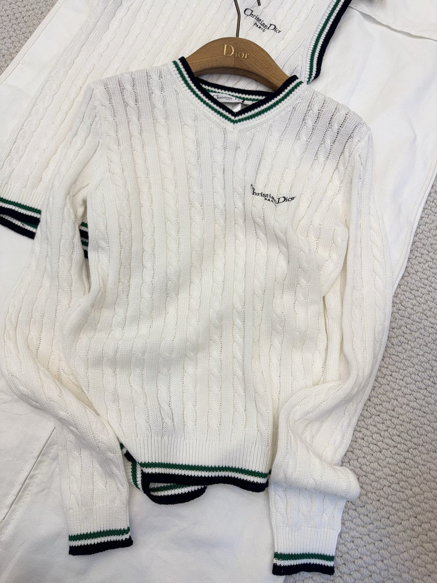 CD Embroidered Logo Sweater Beige Wool Cotton