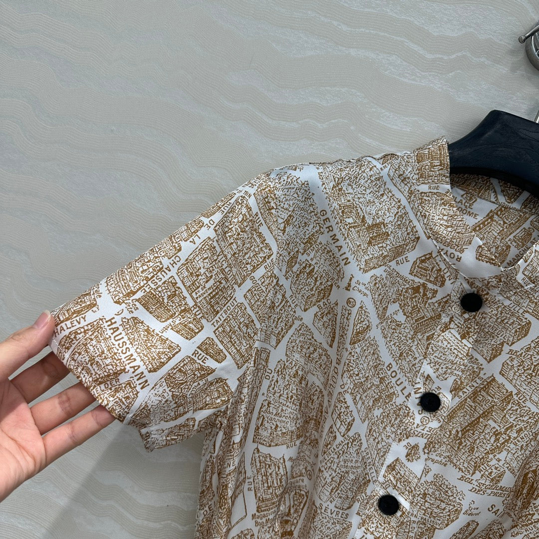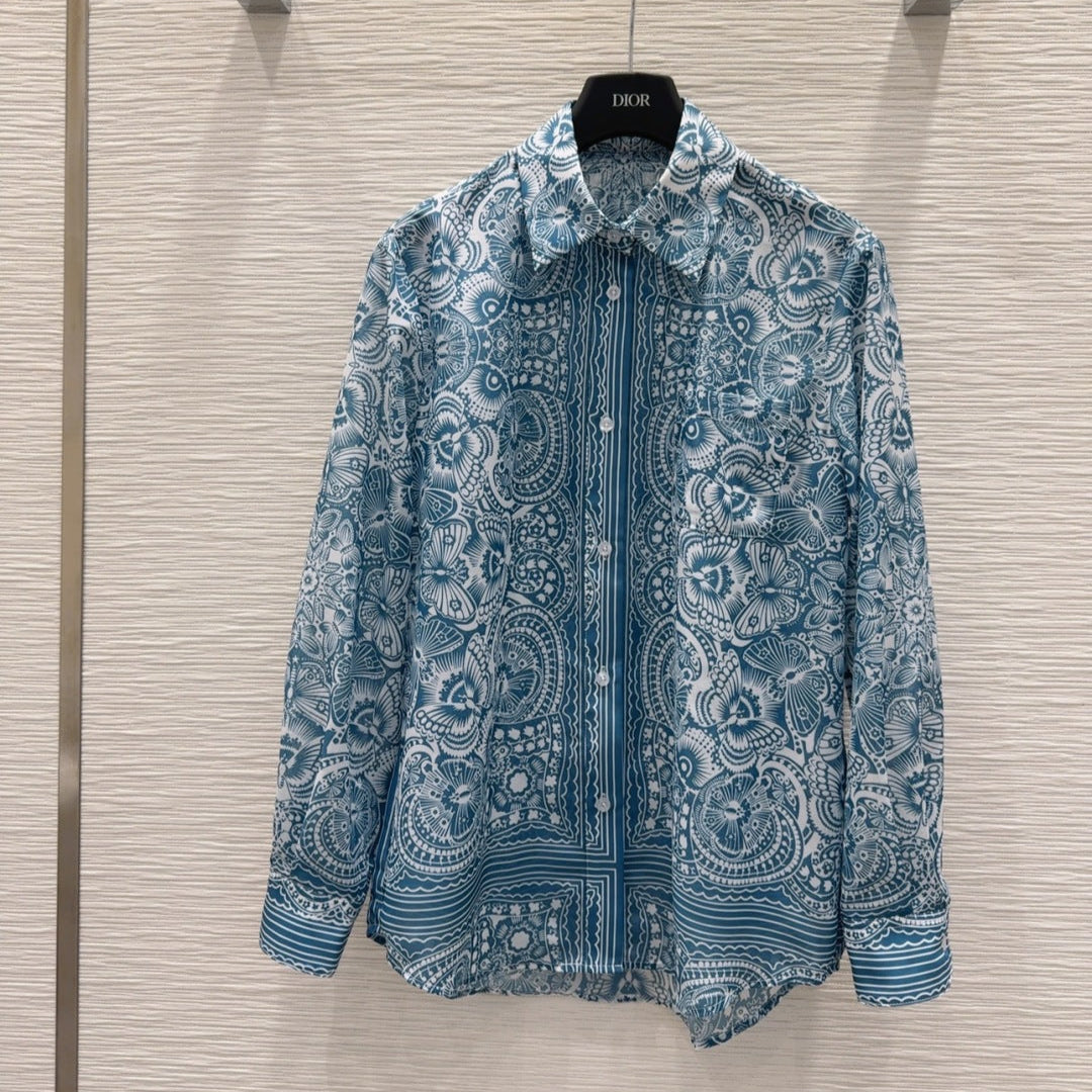 CD 25 Oblique Buttoned Long-sleeved Shirt White Cotton