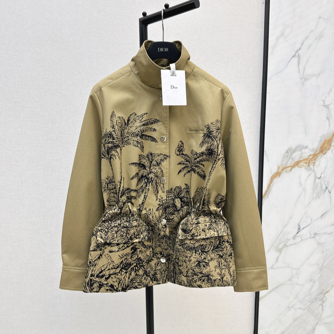 CD 25 Ink And Floral Short Jacket Beige Cotton