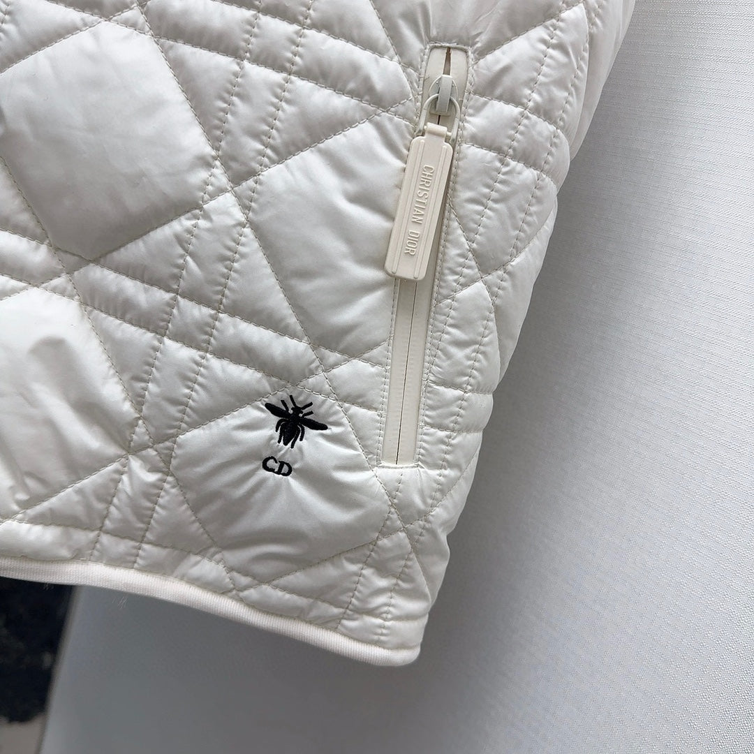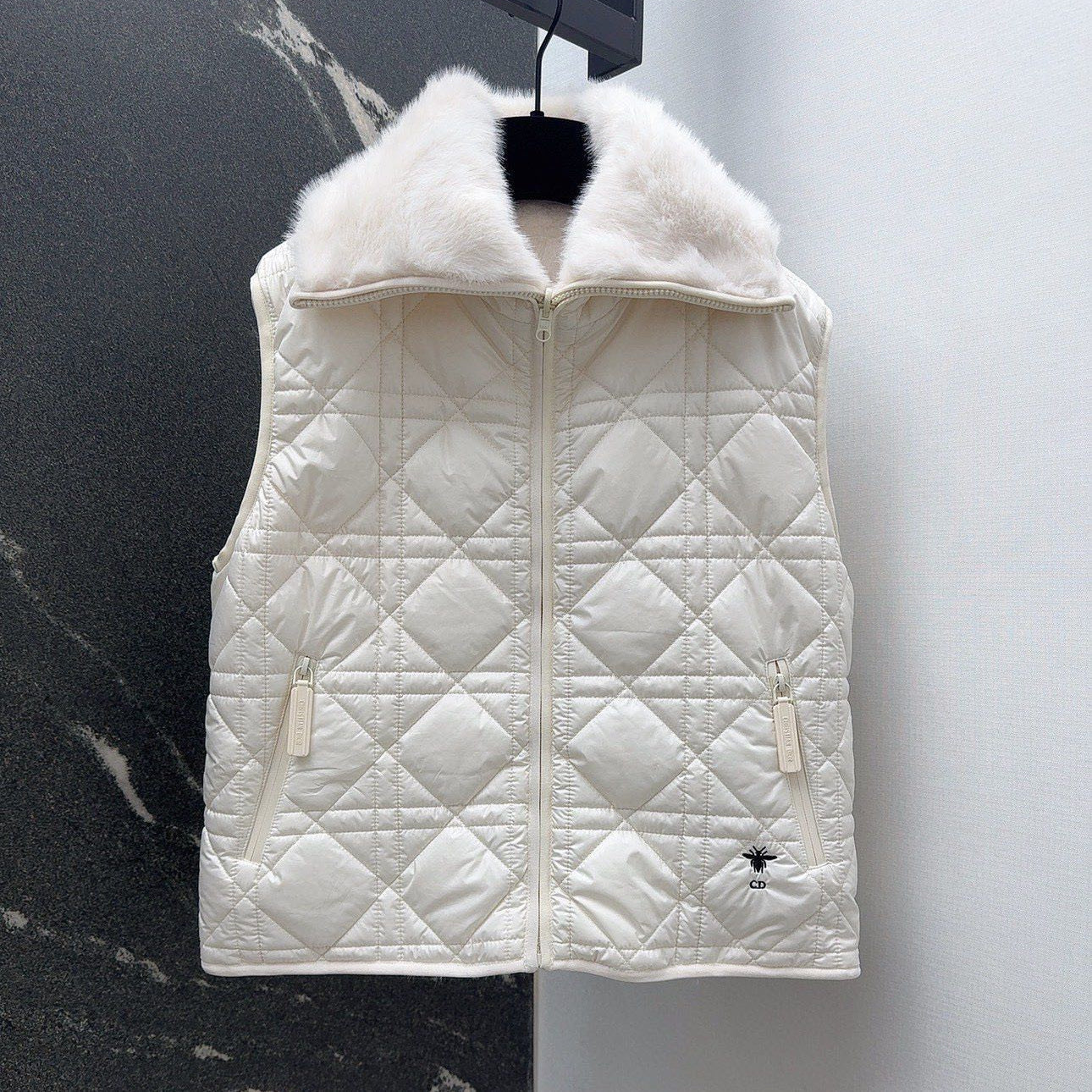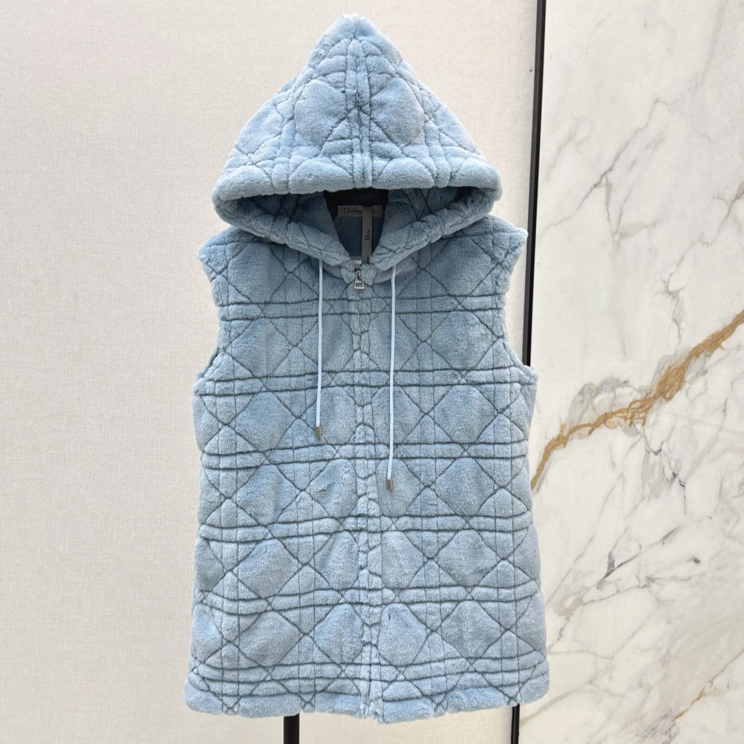 CD 25 Hooded Vest Leather And Fur Ivory White