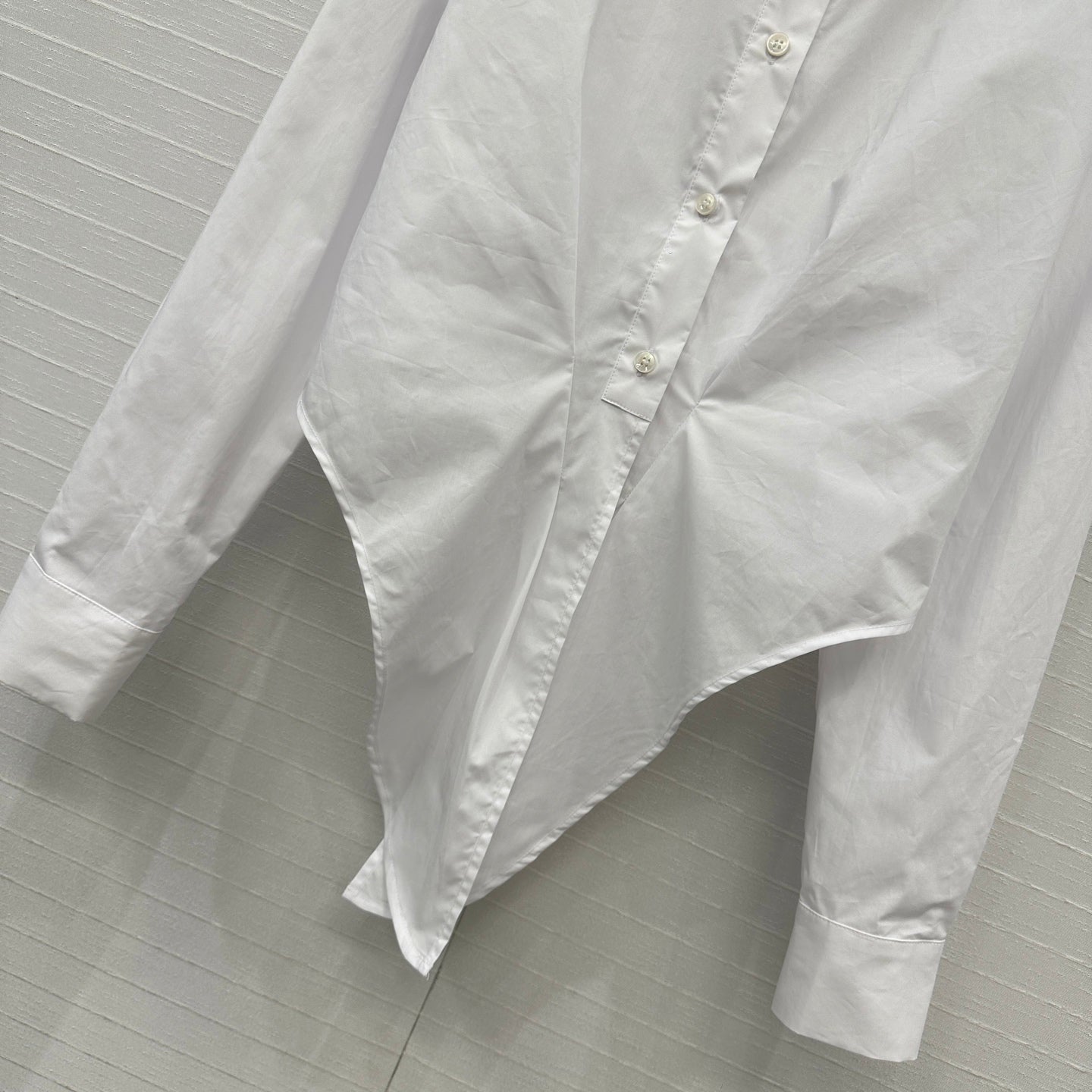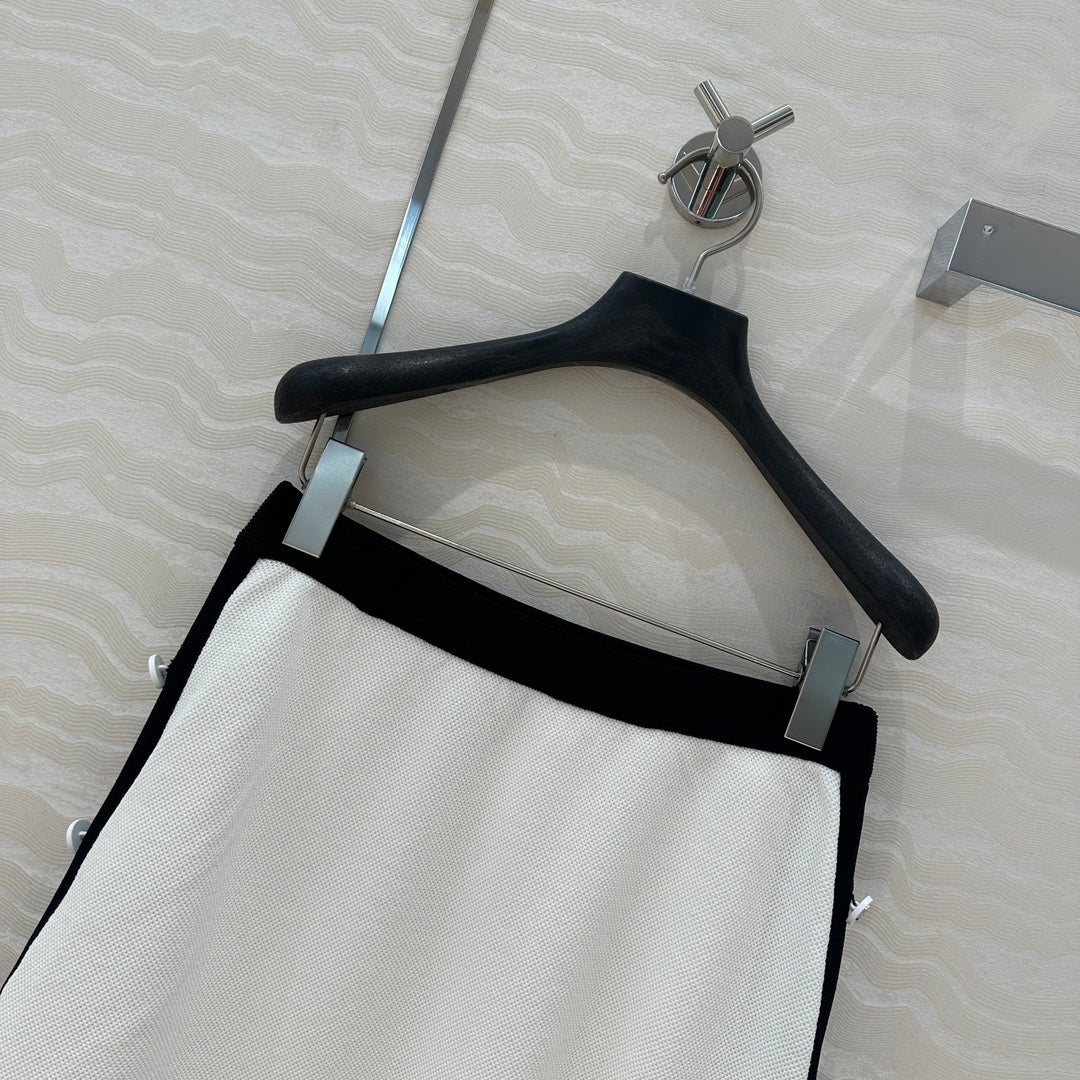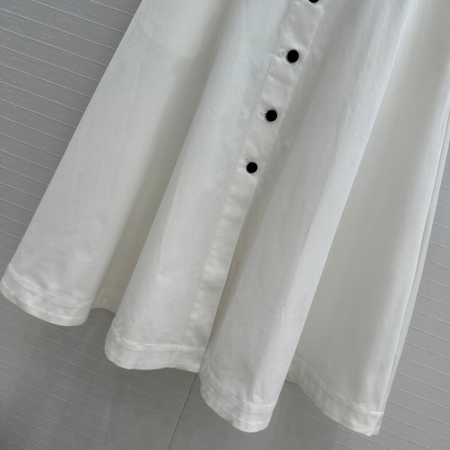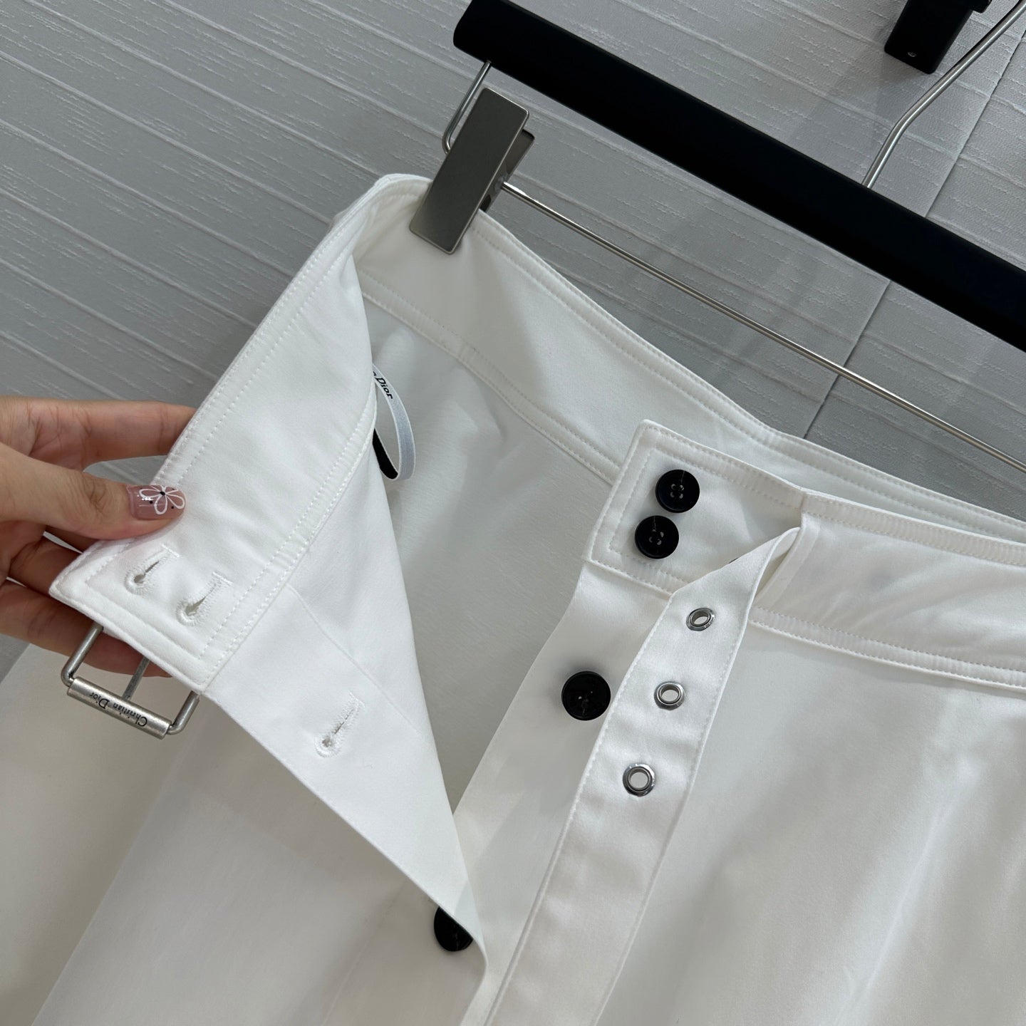 CD 25 Belted Single-breasted Long Skirt White Cotton