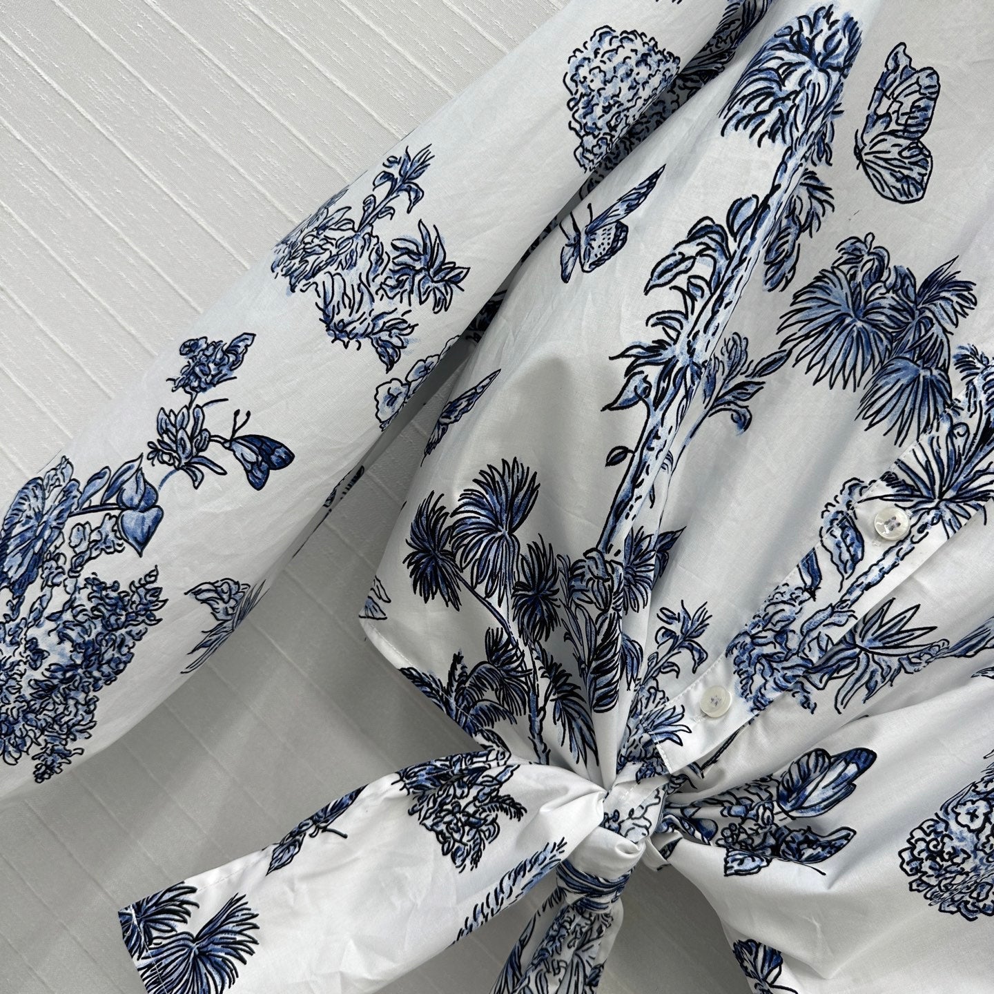 CD 25 Pattern Printed Suspender Dress White Blue Cotton Polyester