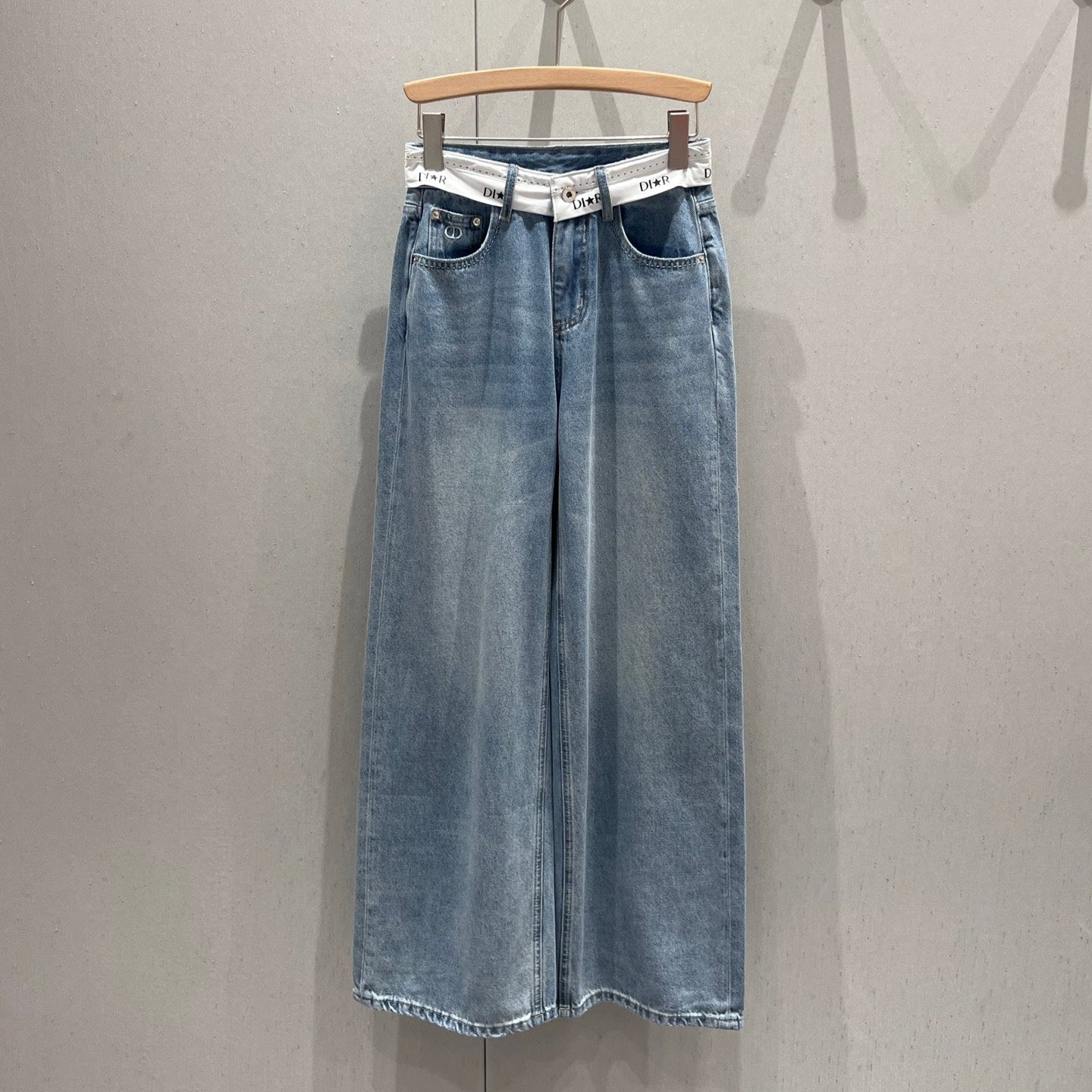 CD 25 Waistband Denim Pants Blue Cotton Polyester 217804
