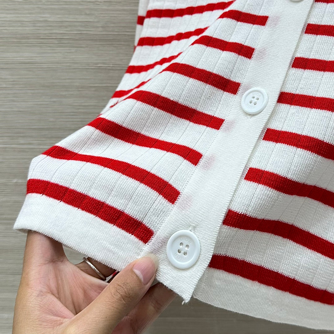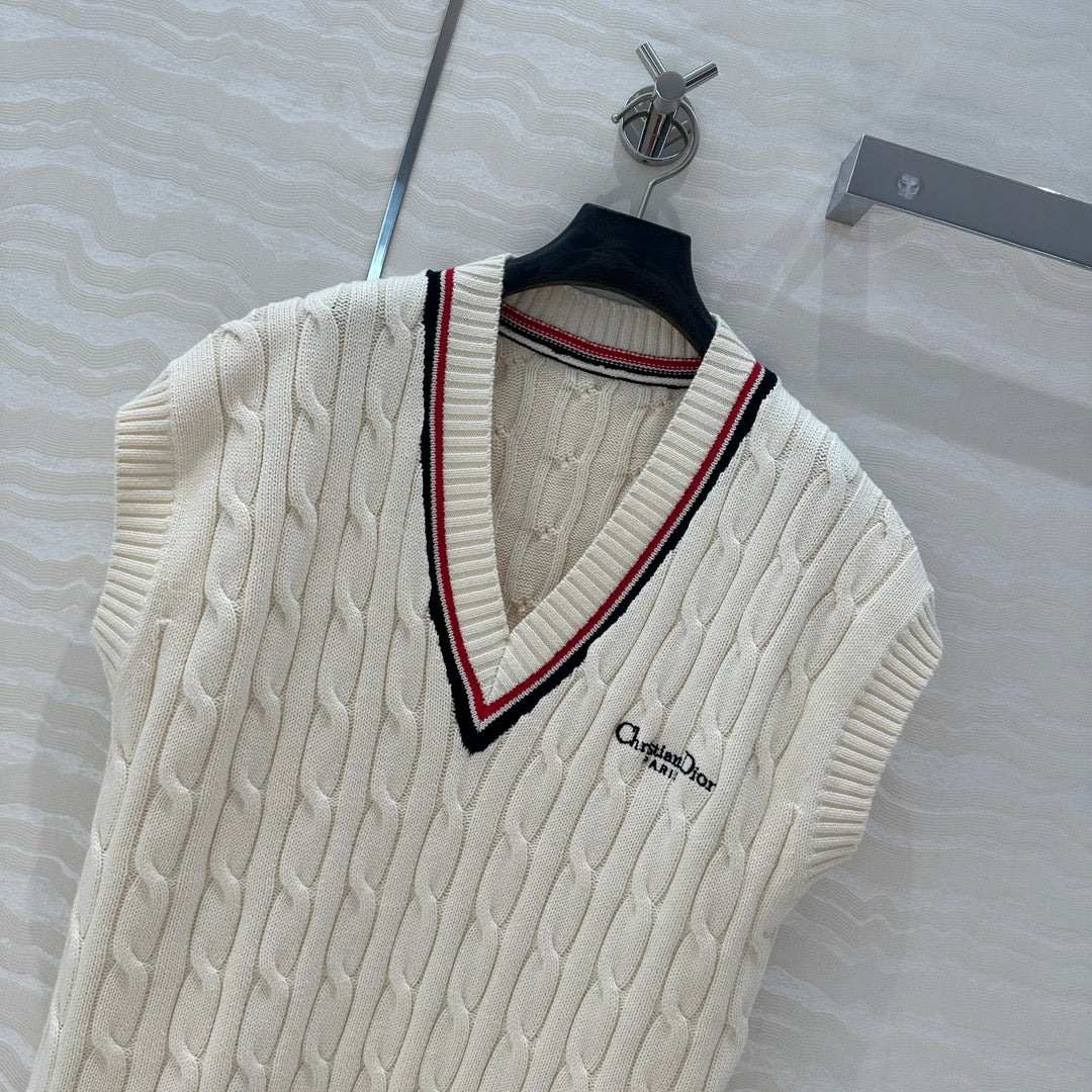 CD Round Neck Cardigan Jacket White Wool Cotton