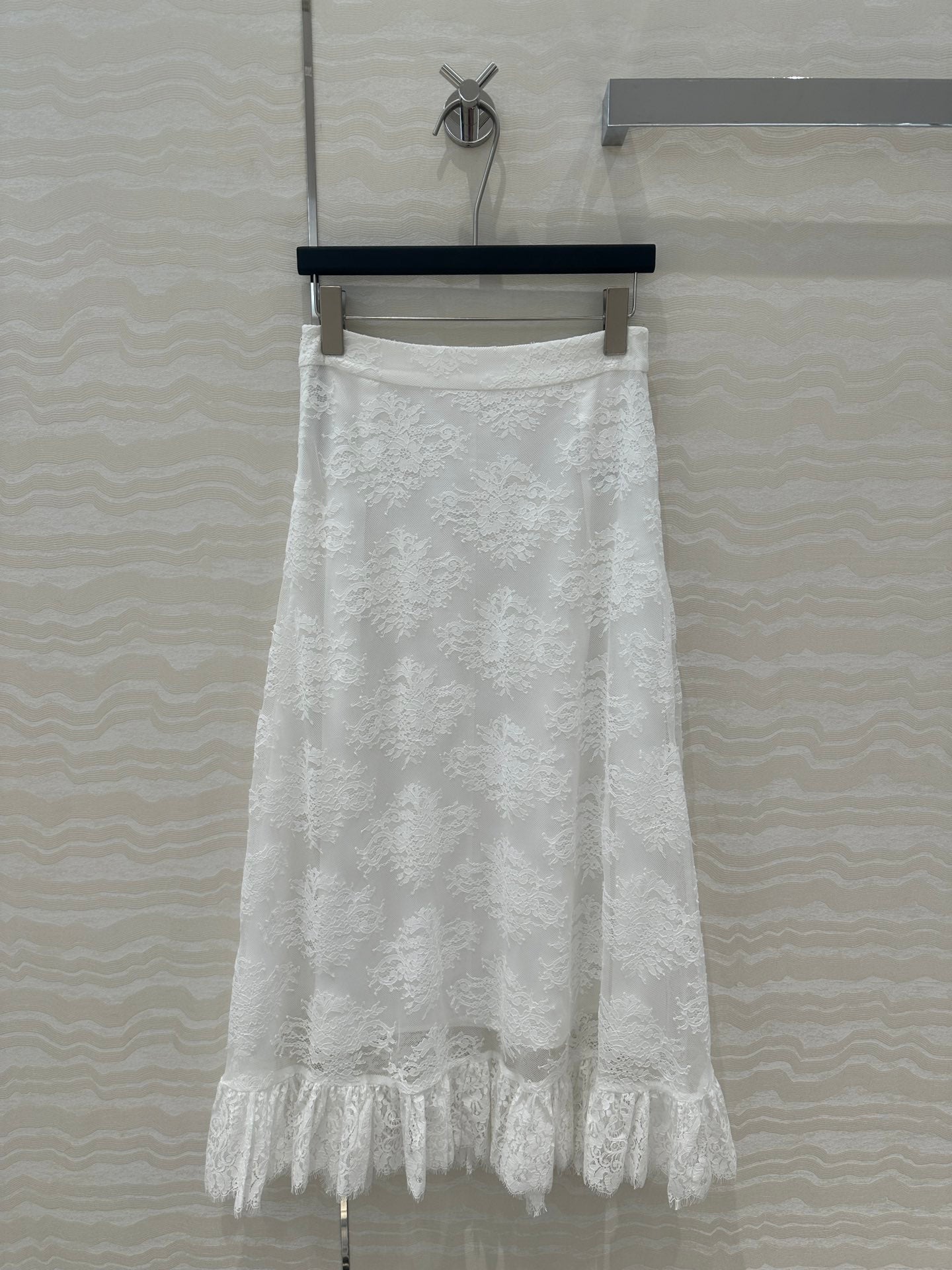 CD 25 Belted Single-breasted Long Skirt White Cotton