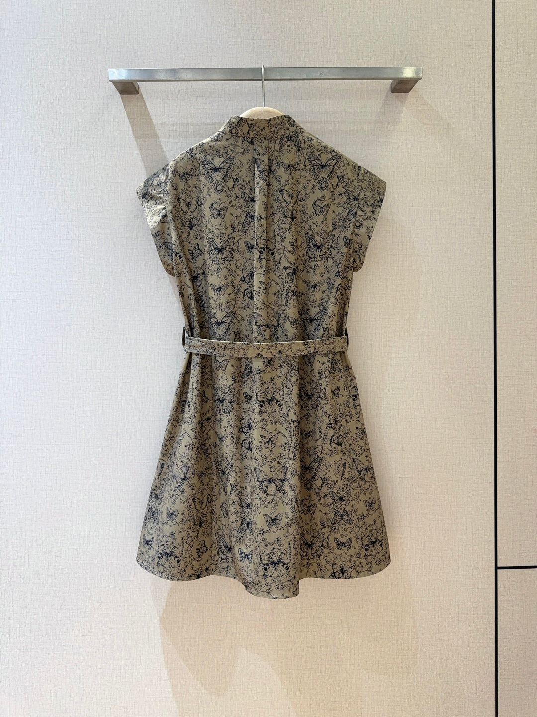 CD 25 Painting Waist Sleeveless Dress White Blue Cotton Polyester