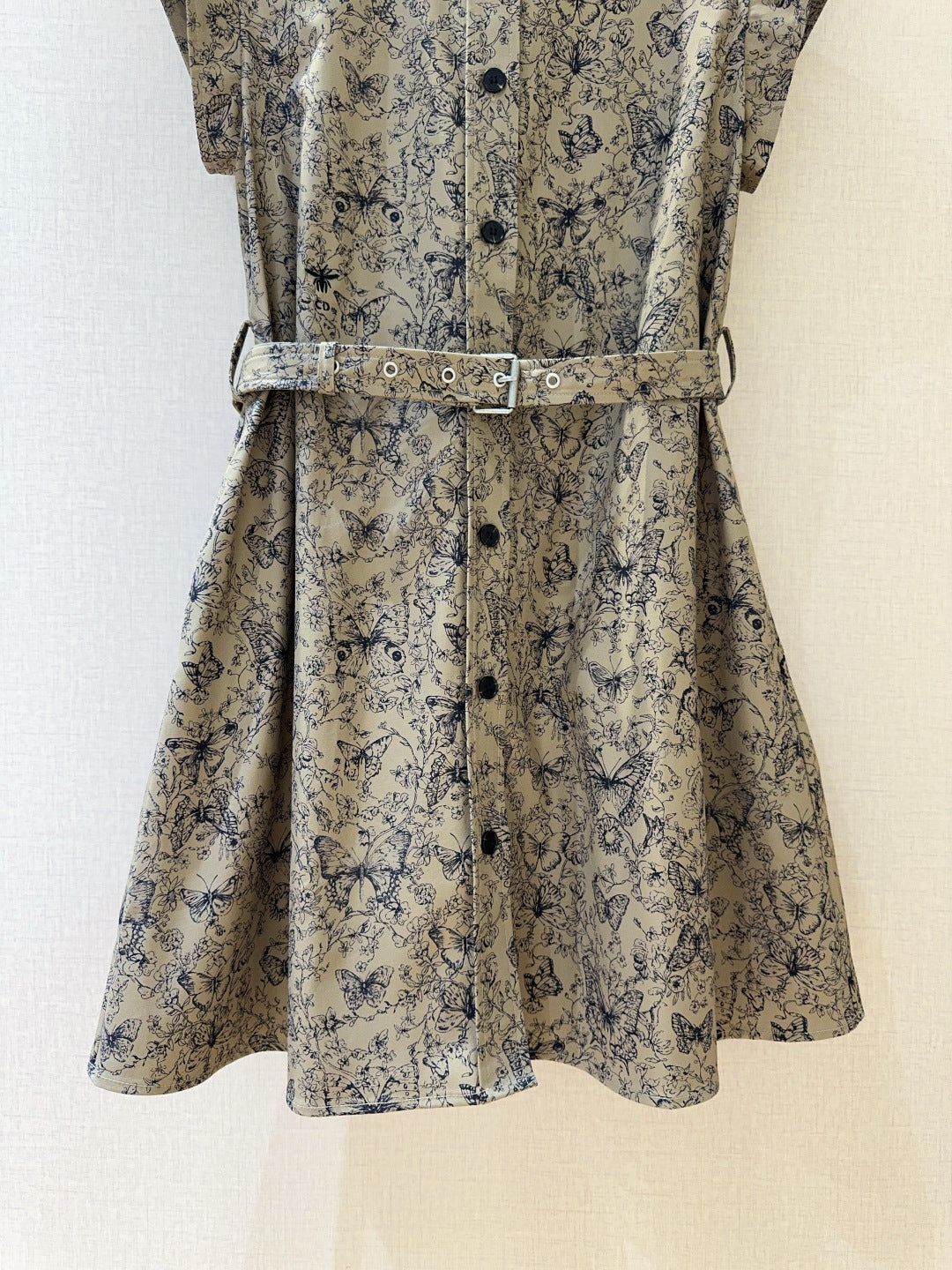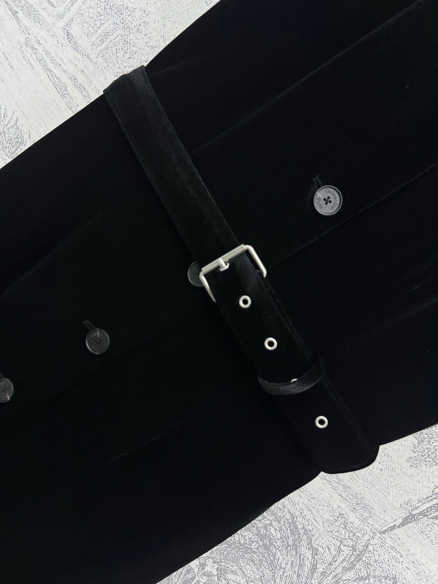 CD 25 Belted Single-breasted Long Skirt Khaki Cotton