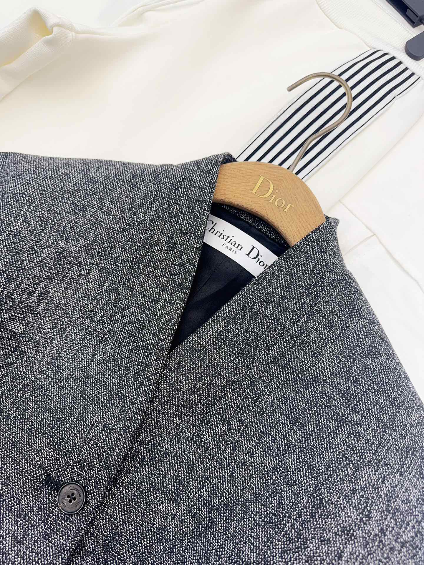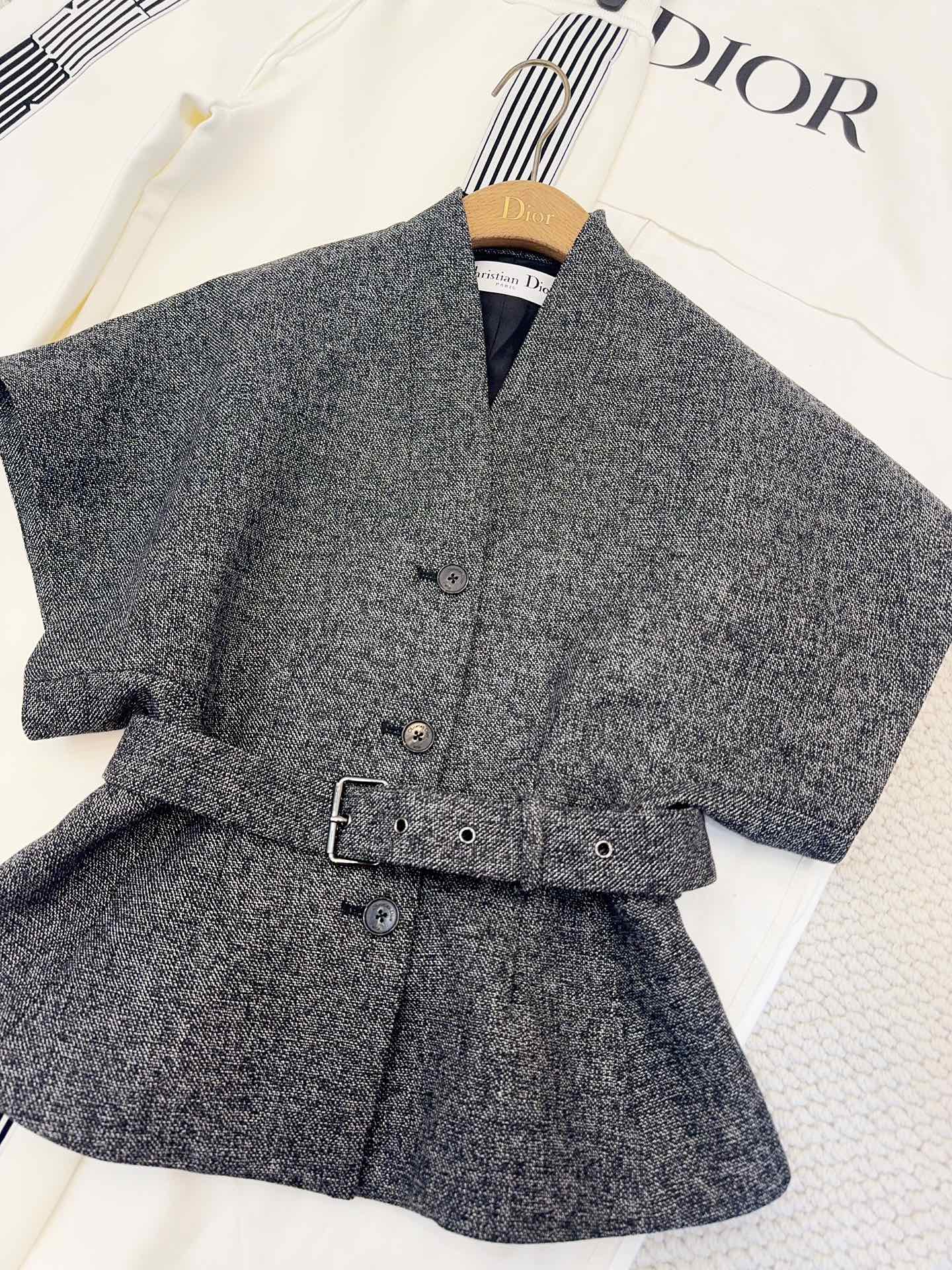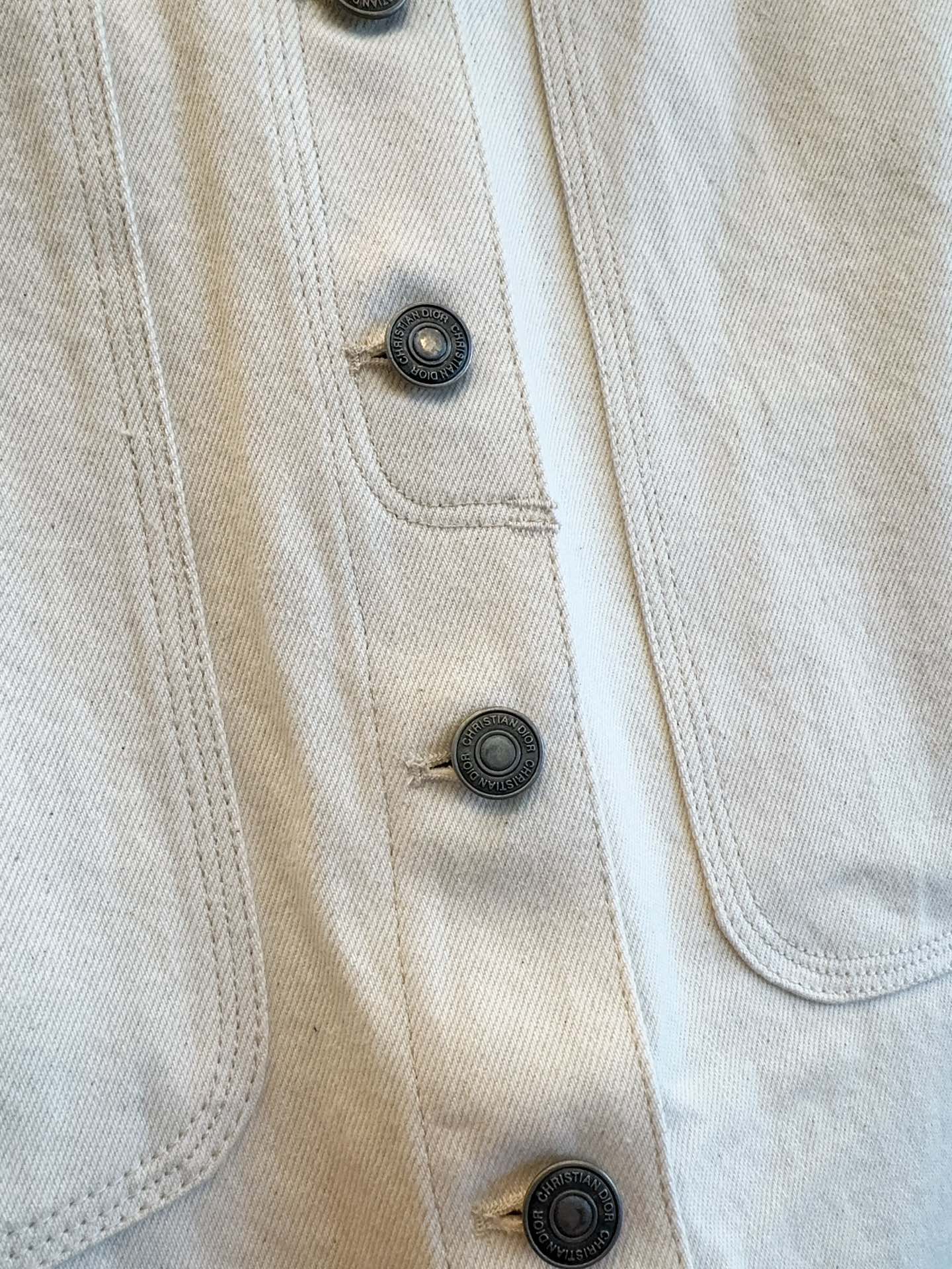 CD Round Neck Cardigan Jacket White Wool Cotton