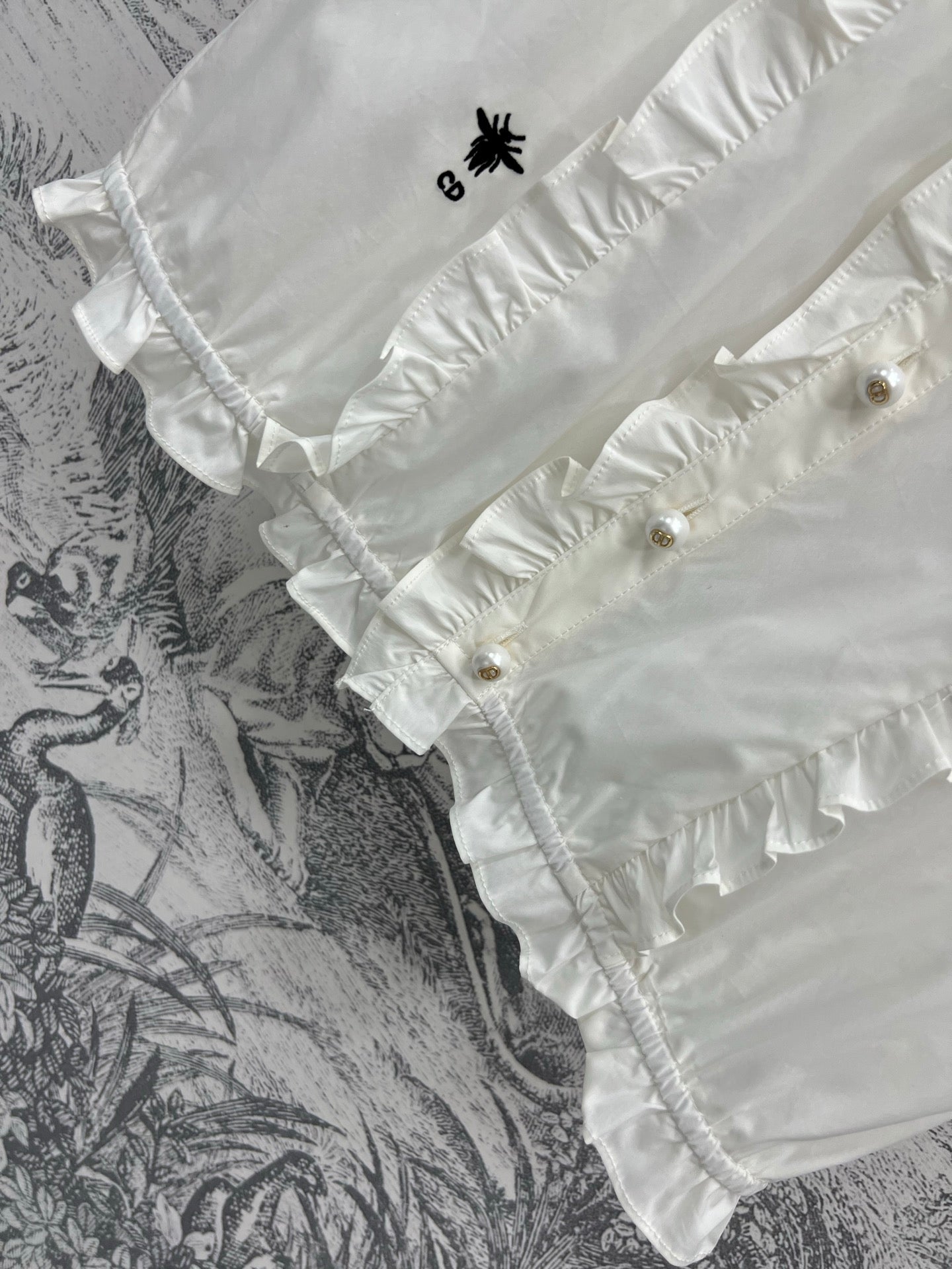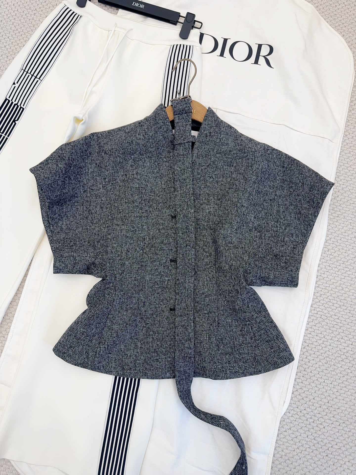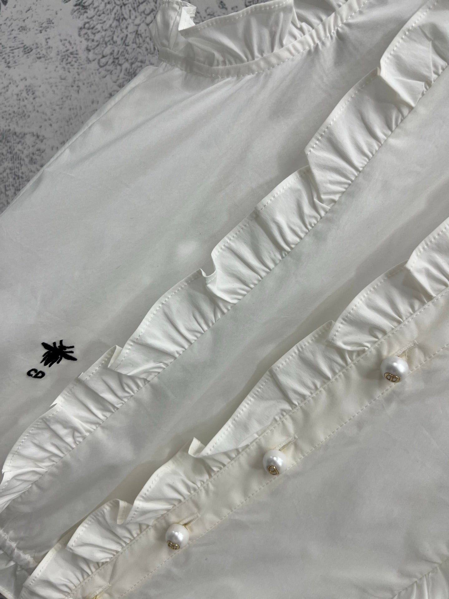 CD Round Neck Cardigan Jacket White Wool Cotton
