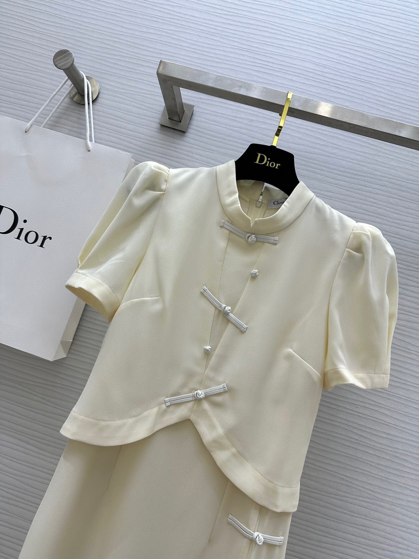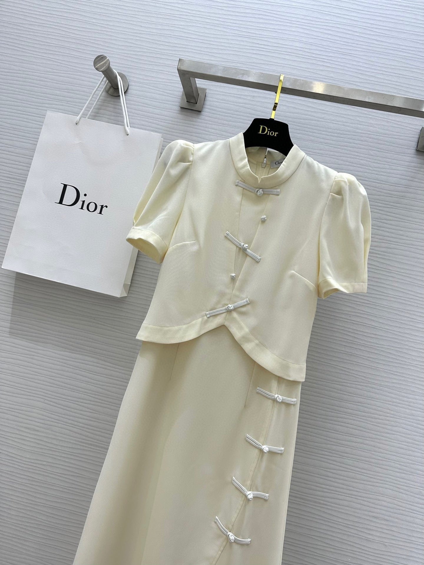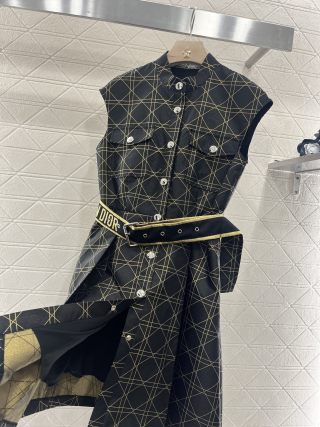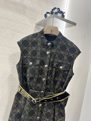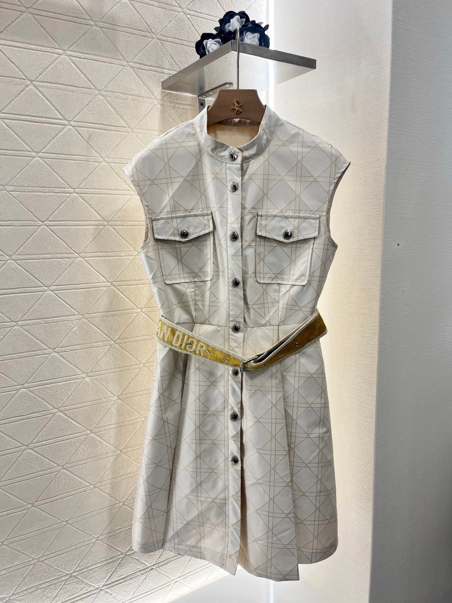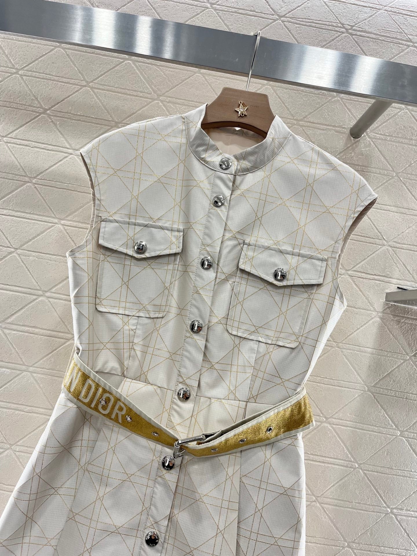 CD 2025 Vest Dress White mix Navy blue Cotton Polyester