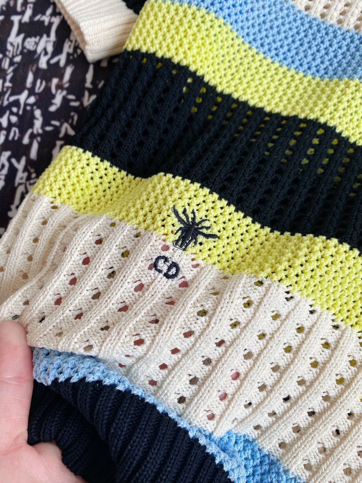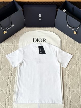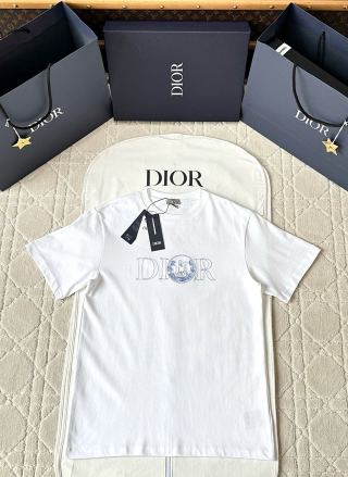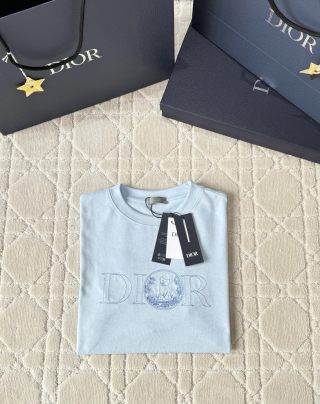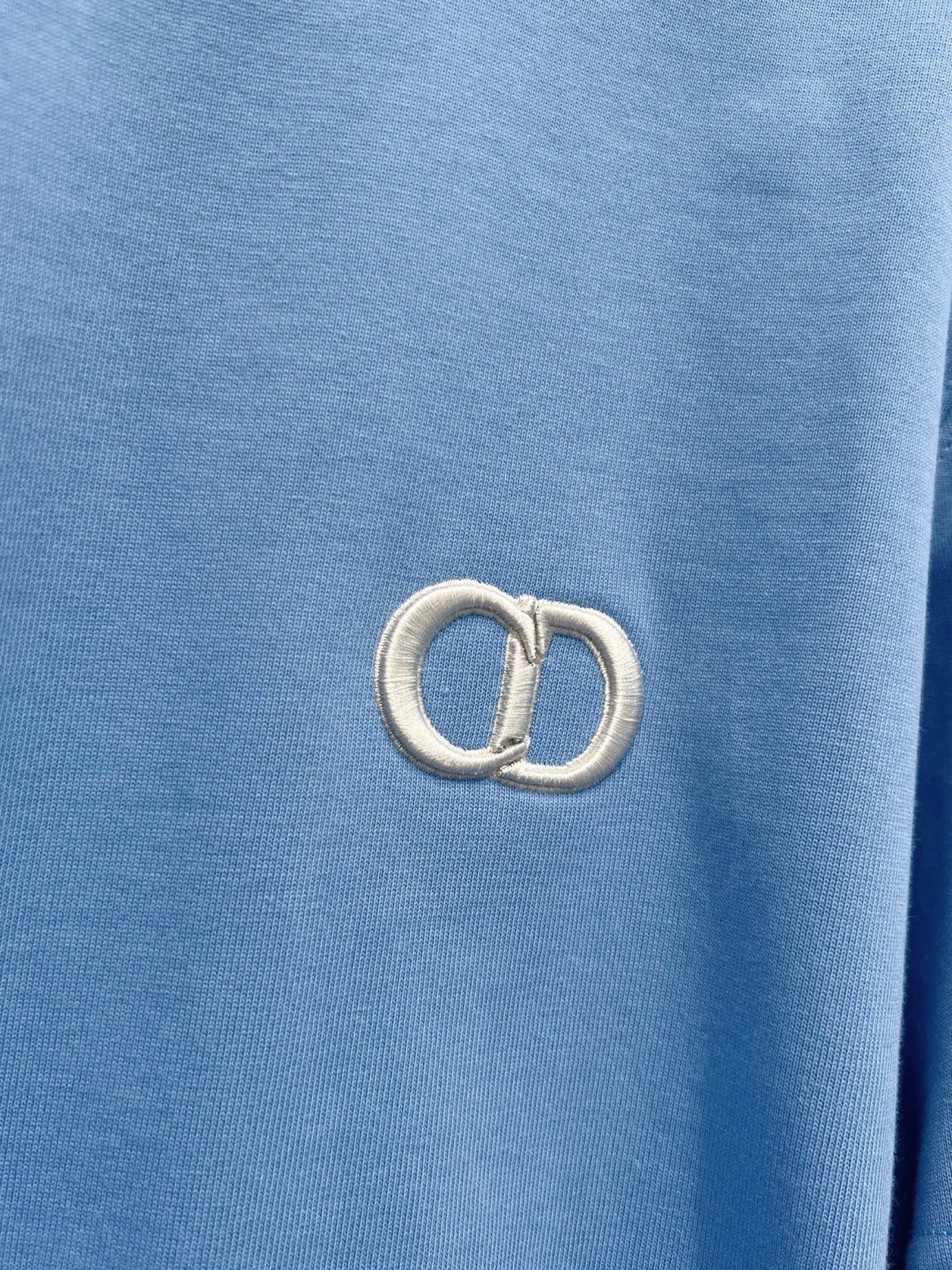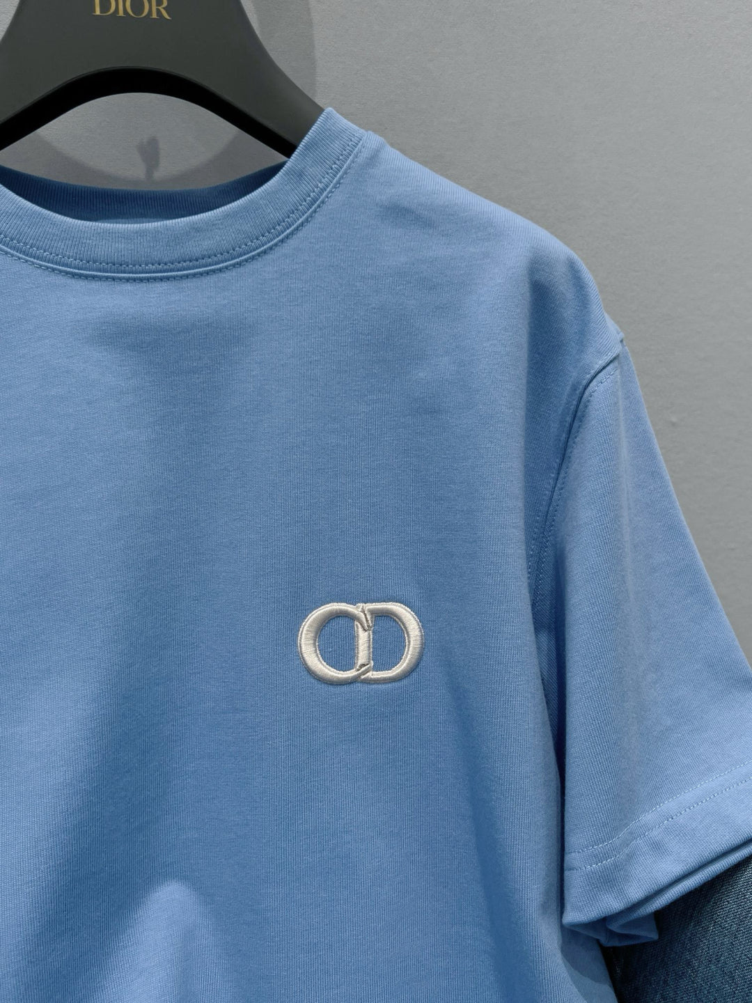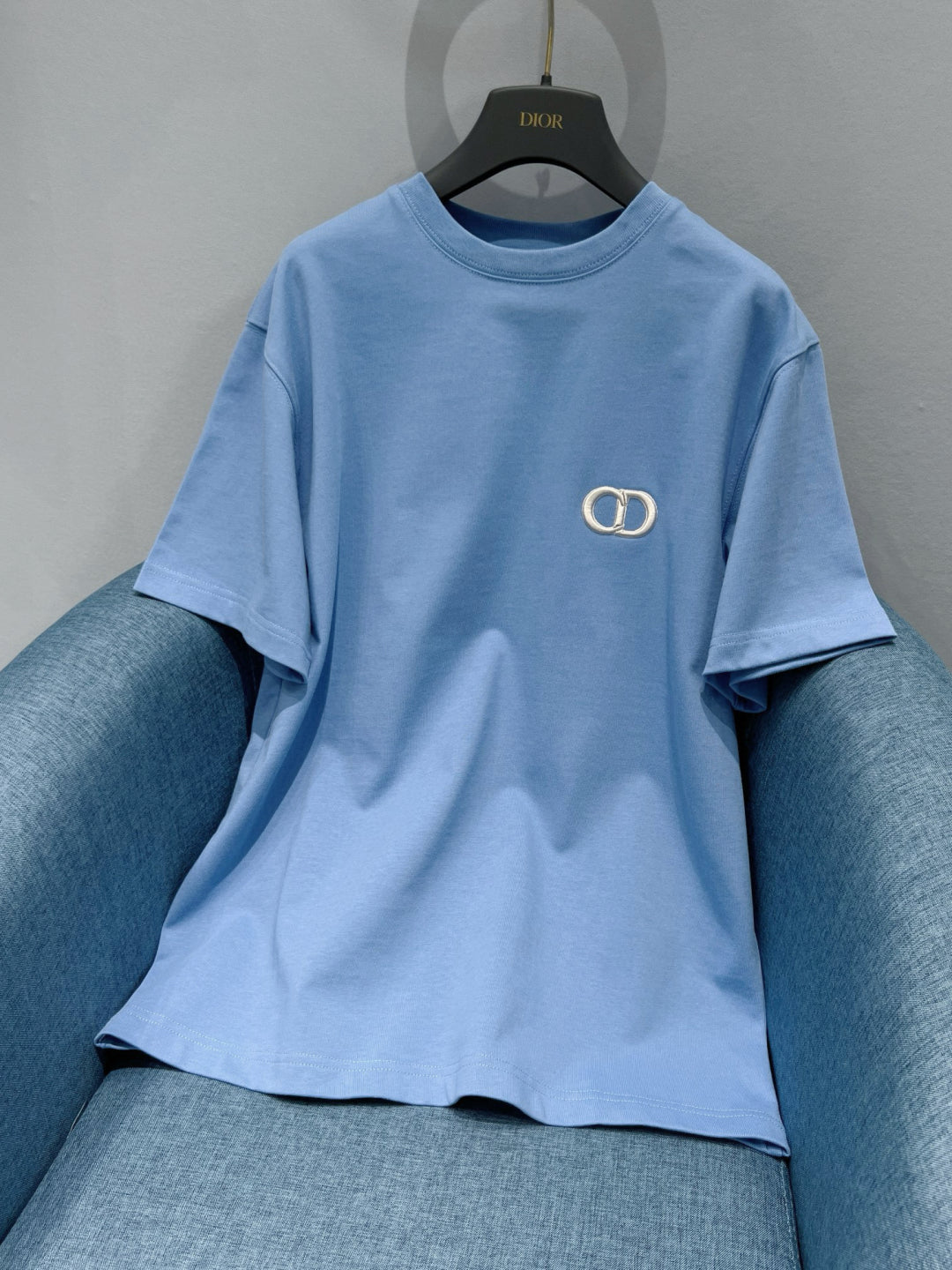 CD 2025 Striped Short-sleeved T-shirt Blue White tencel 606659