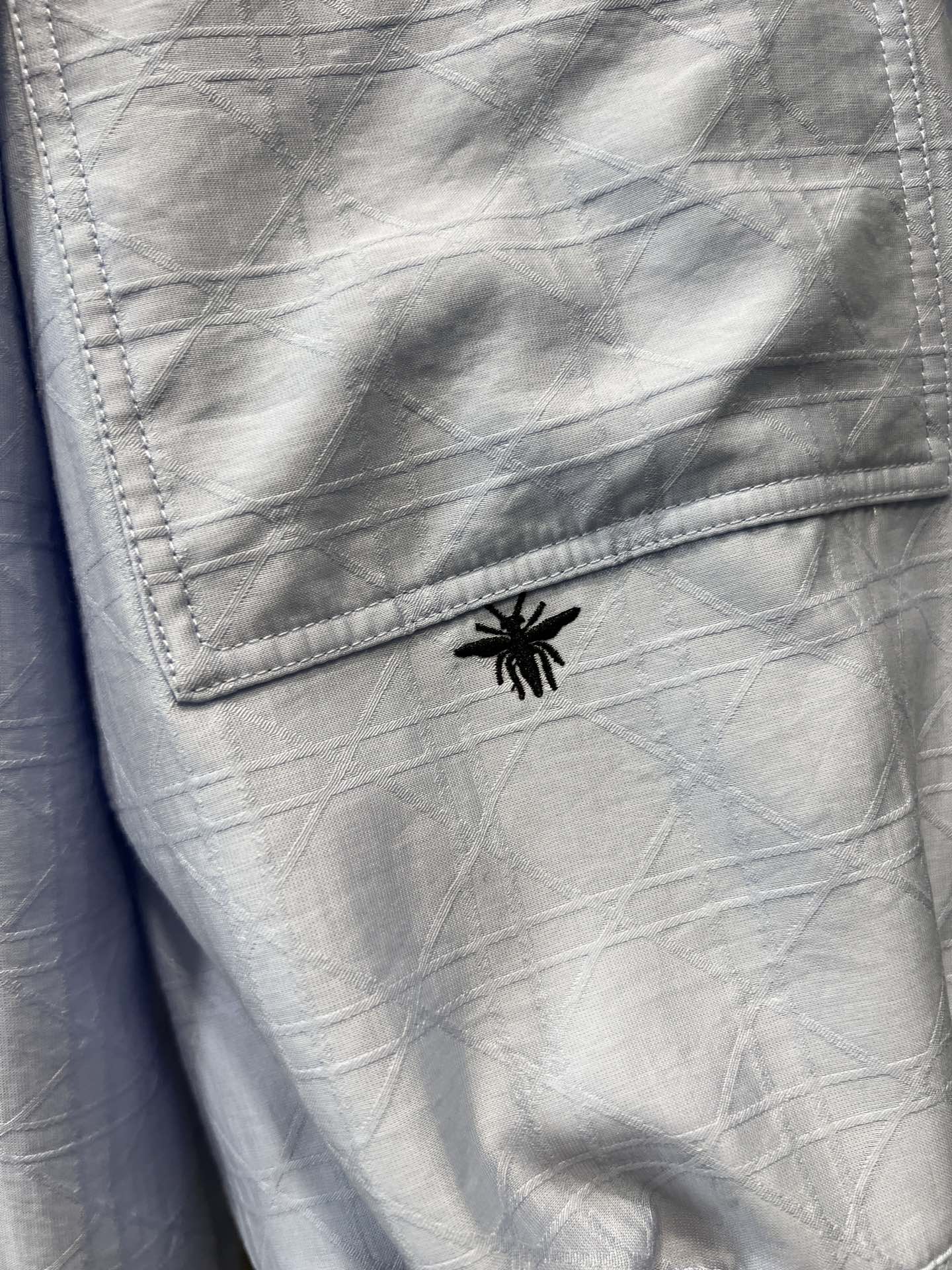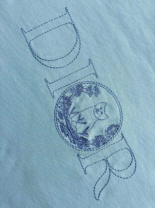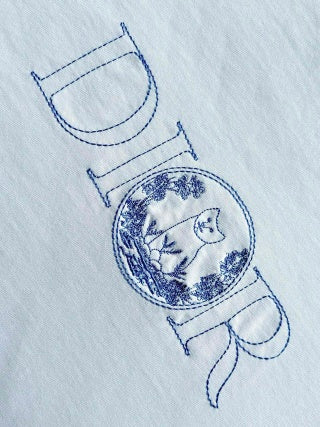 CD 25 Embroidered Short Sleeves Beige Blue Wool
