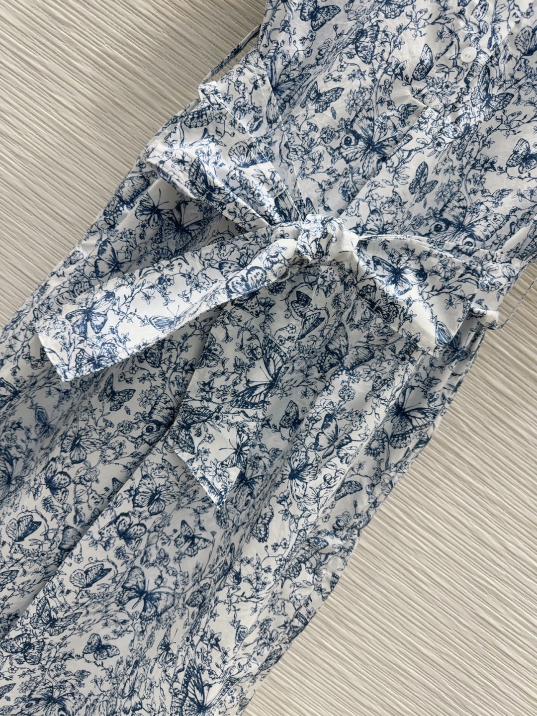 CD 2025 Butterfly Floral Print Dress Multicolor Cotton