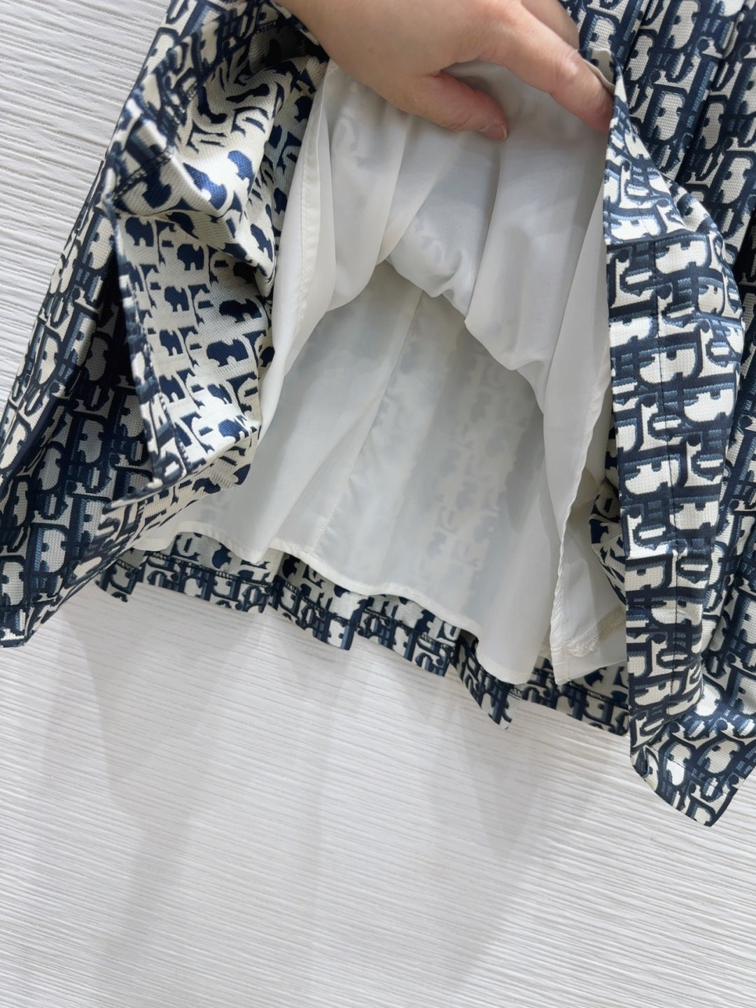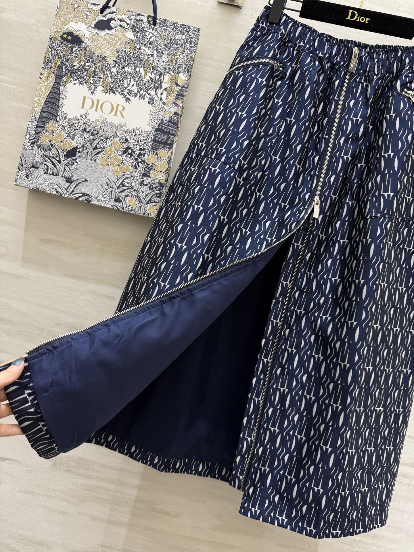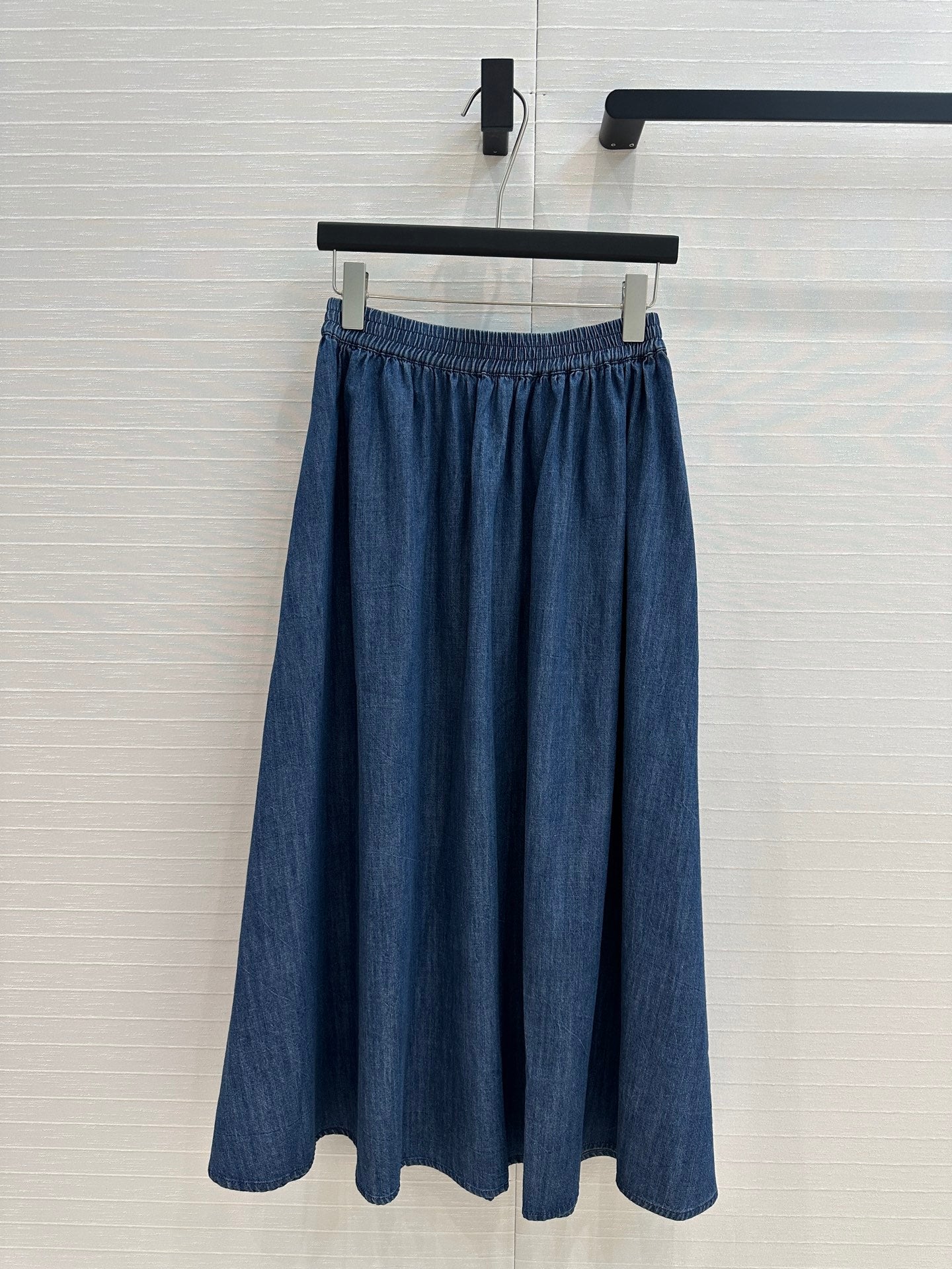 CD 2025 Letter Long Skirt Blue Jacquard Canvas