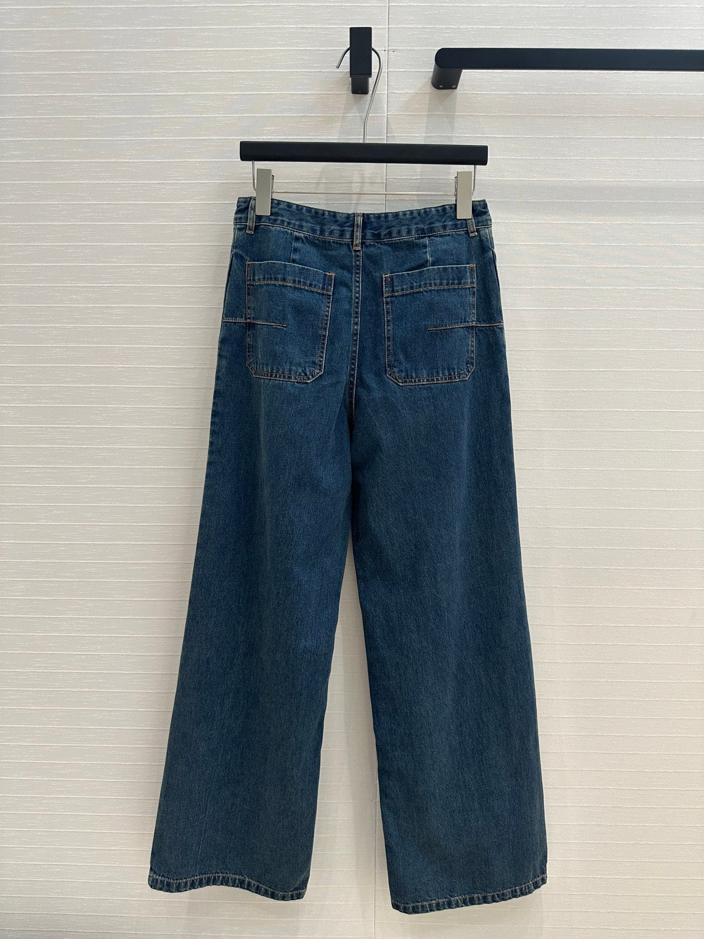 CD 2025 Belt Straight Slightly Stretch Jeans Denim Blue Cotton 109045