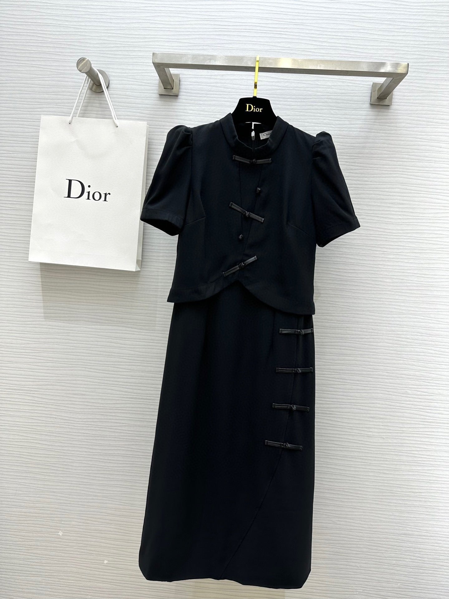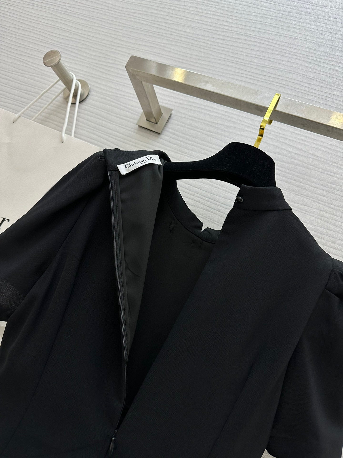 CD 25 V-neck Puff Sleeve Dress black Satin Silk