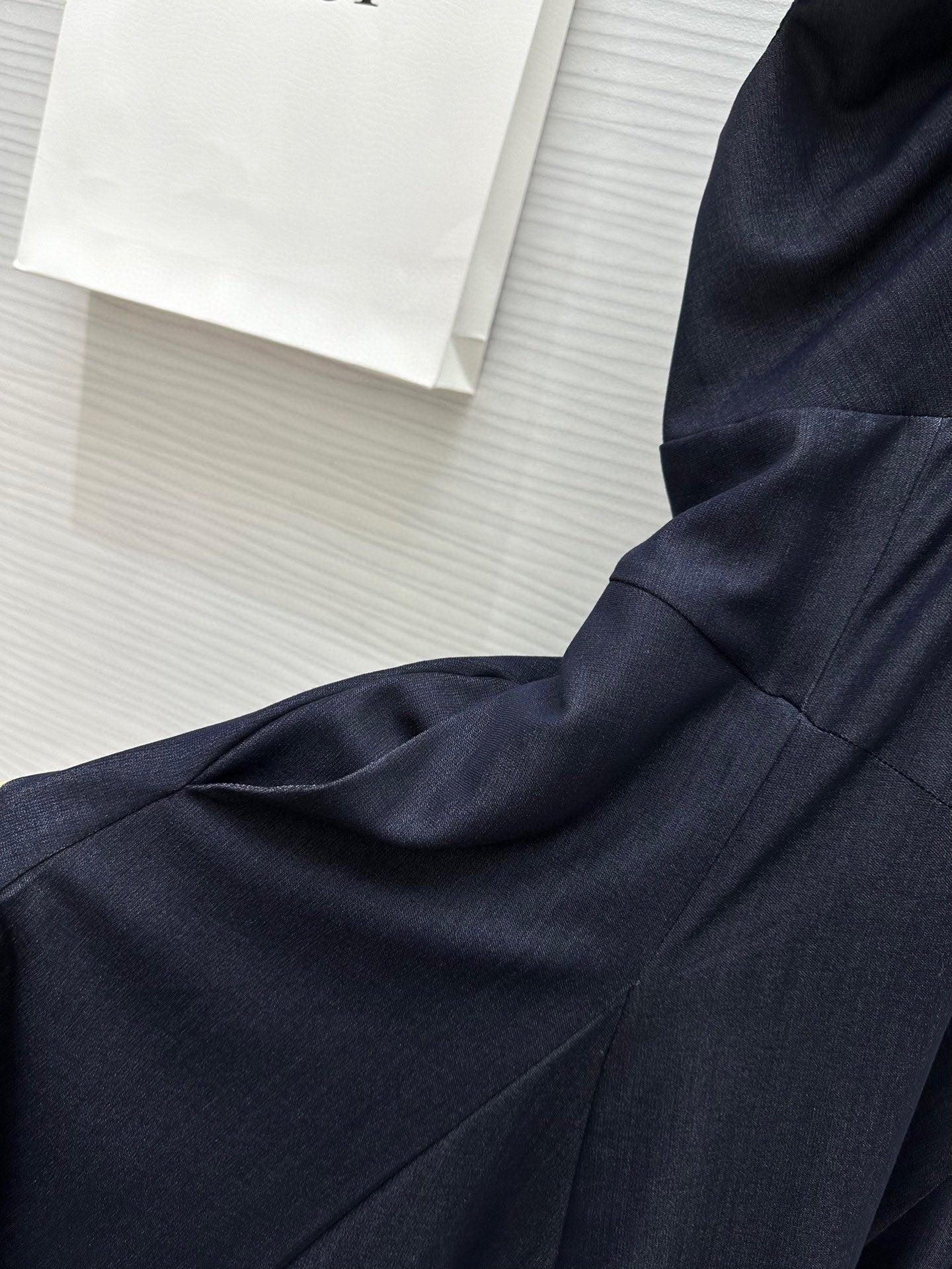 CD Single-breasted Long Umbrella Skirt Blue Cotton