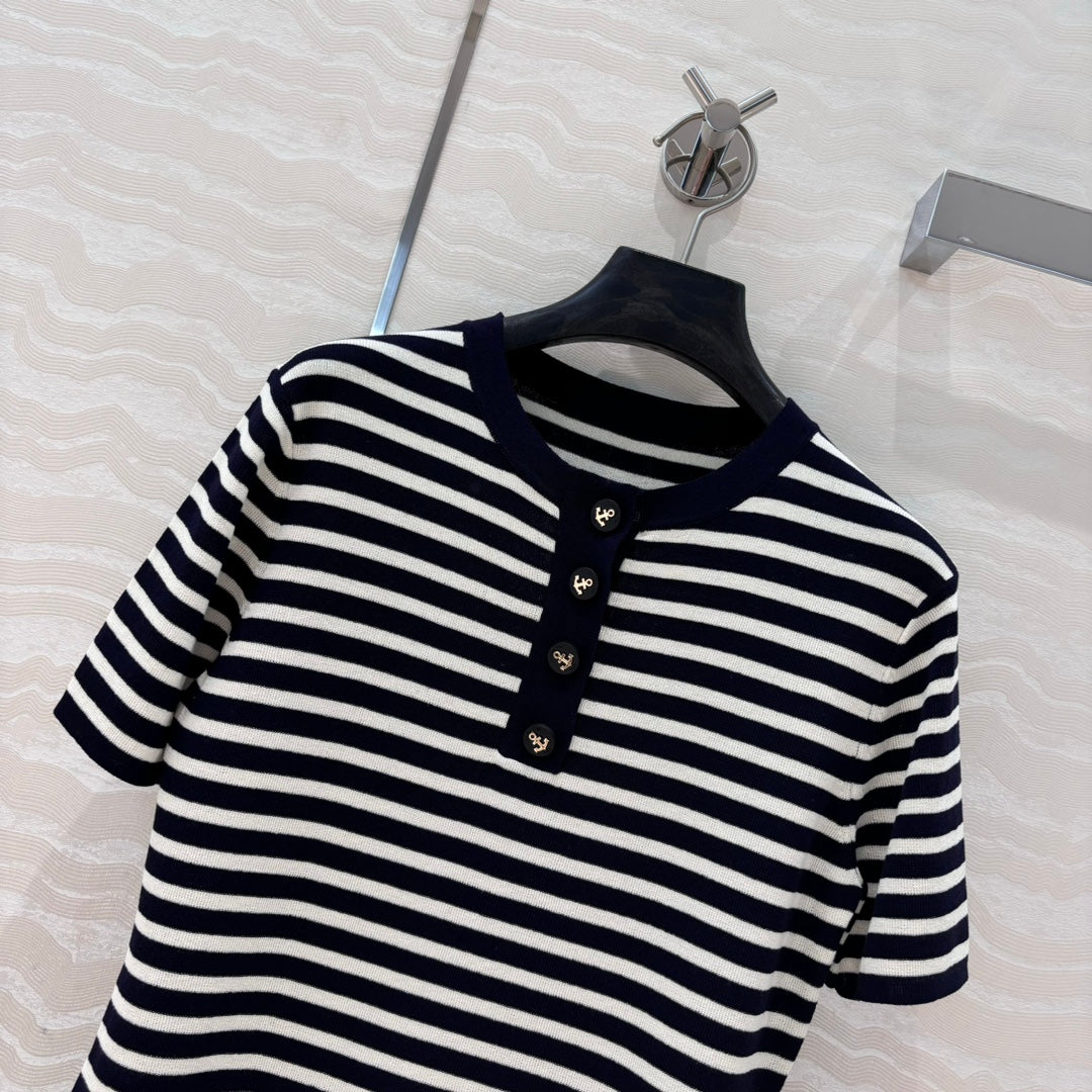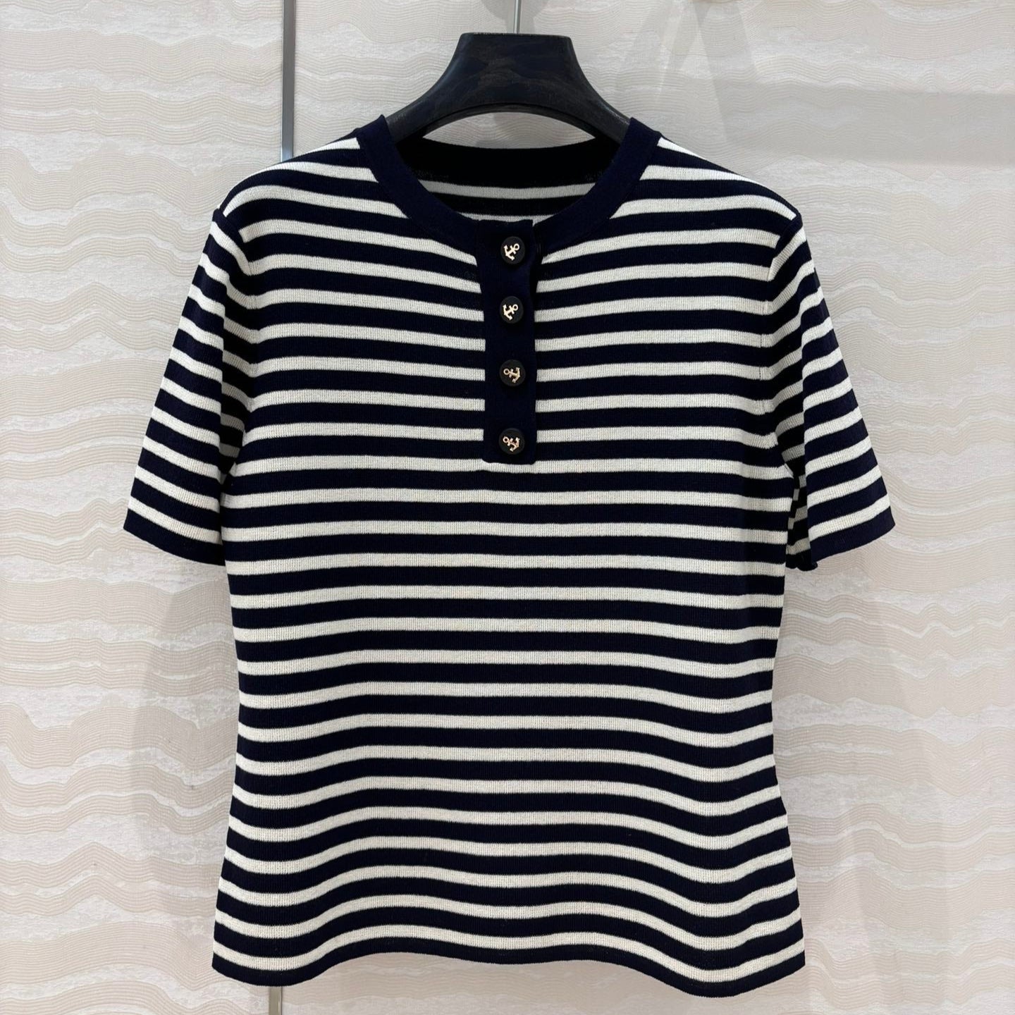 CD 2025 Striped Knitted Short Sleeves Beige mix Black Cotton