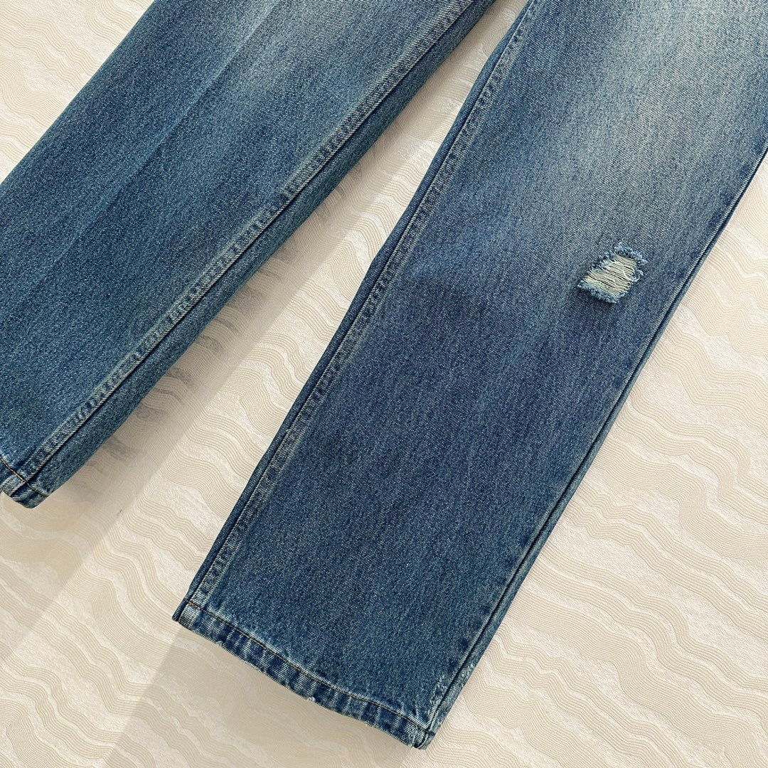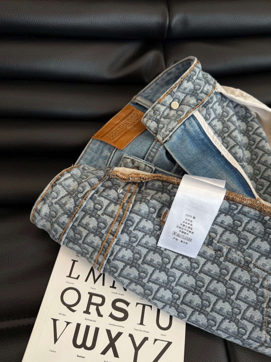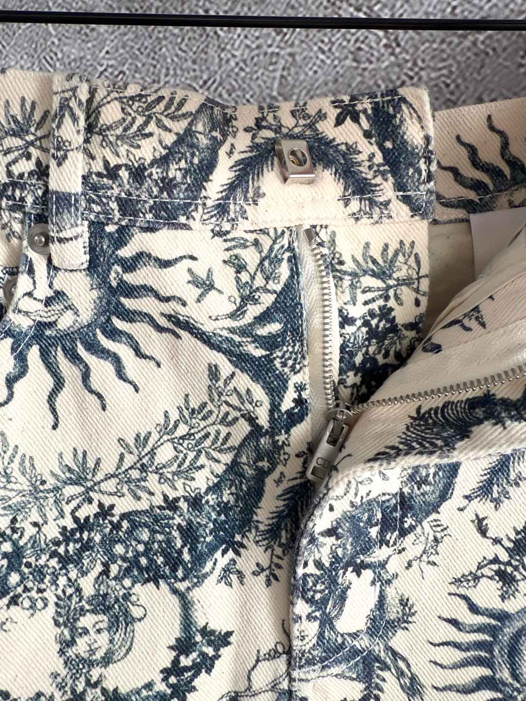CD Denim Shorts With Old Flower Pattern Blue Cotton