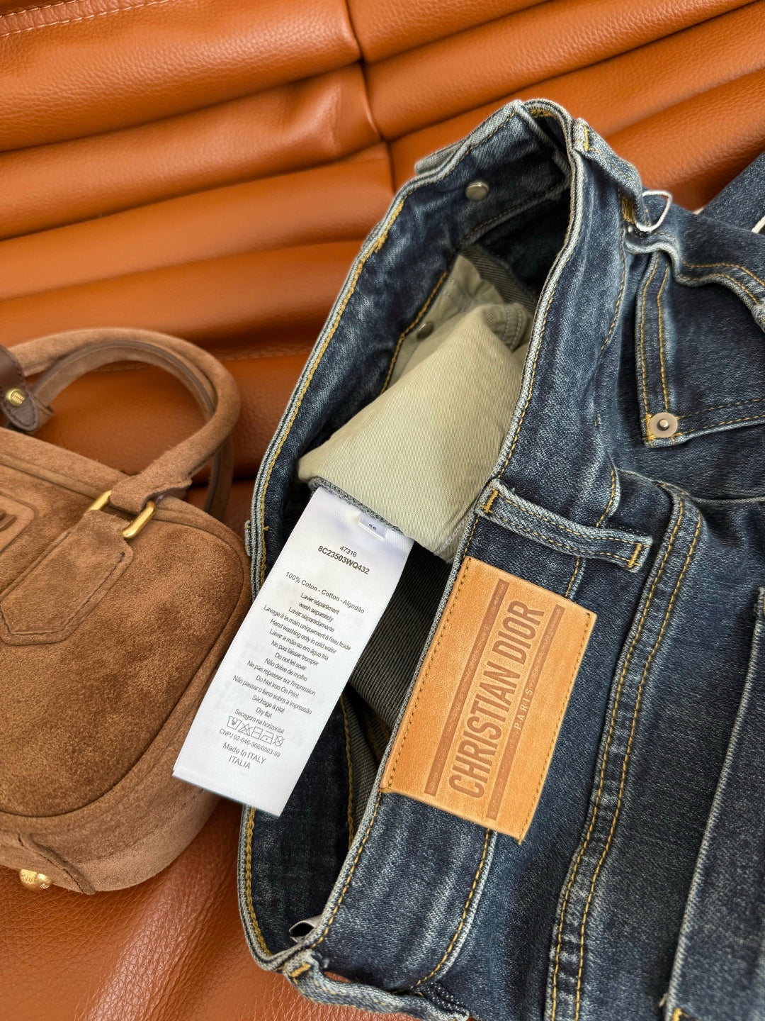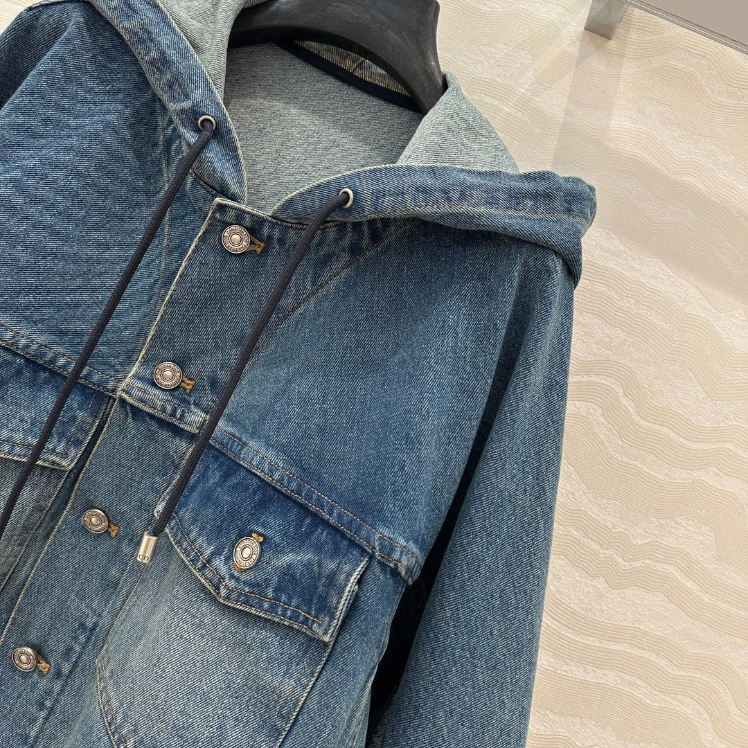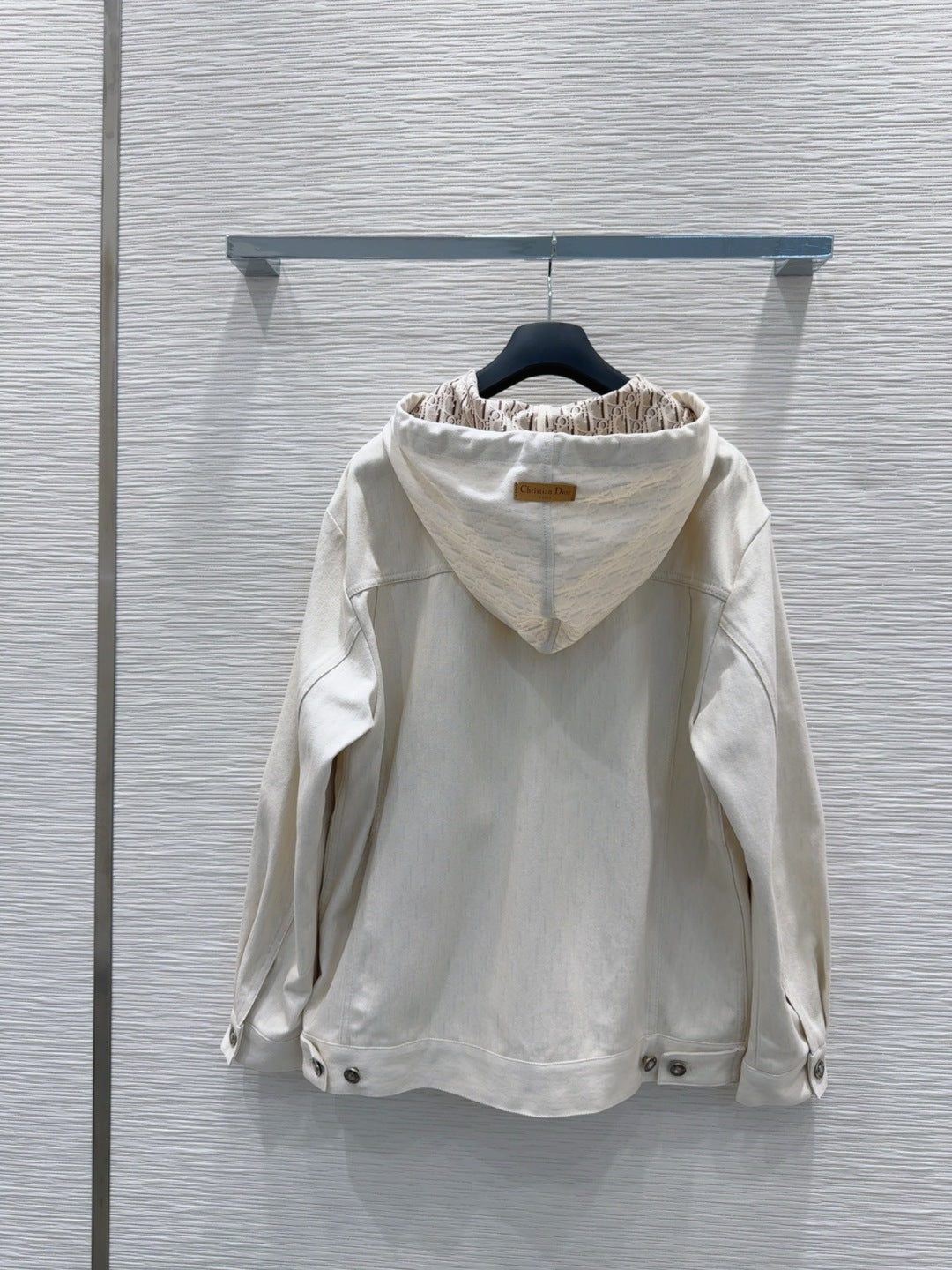 CD Hooded Denim Jacket With Monogram Lining White Beige Cotton