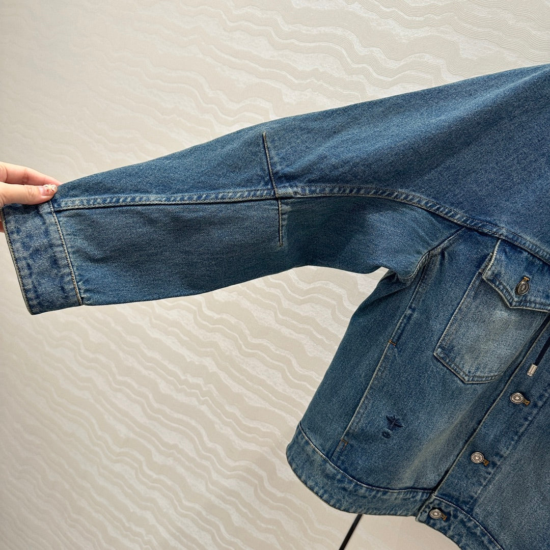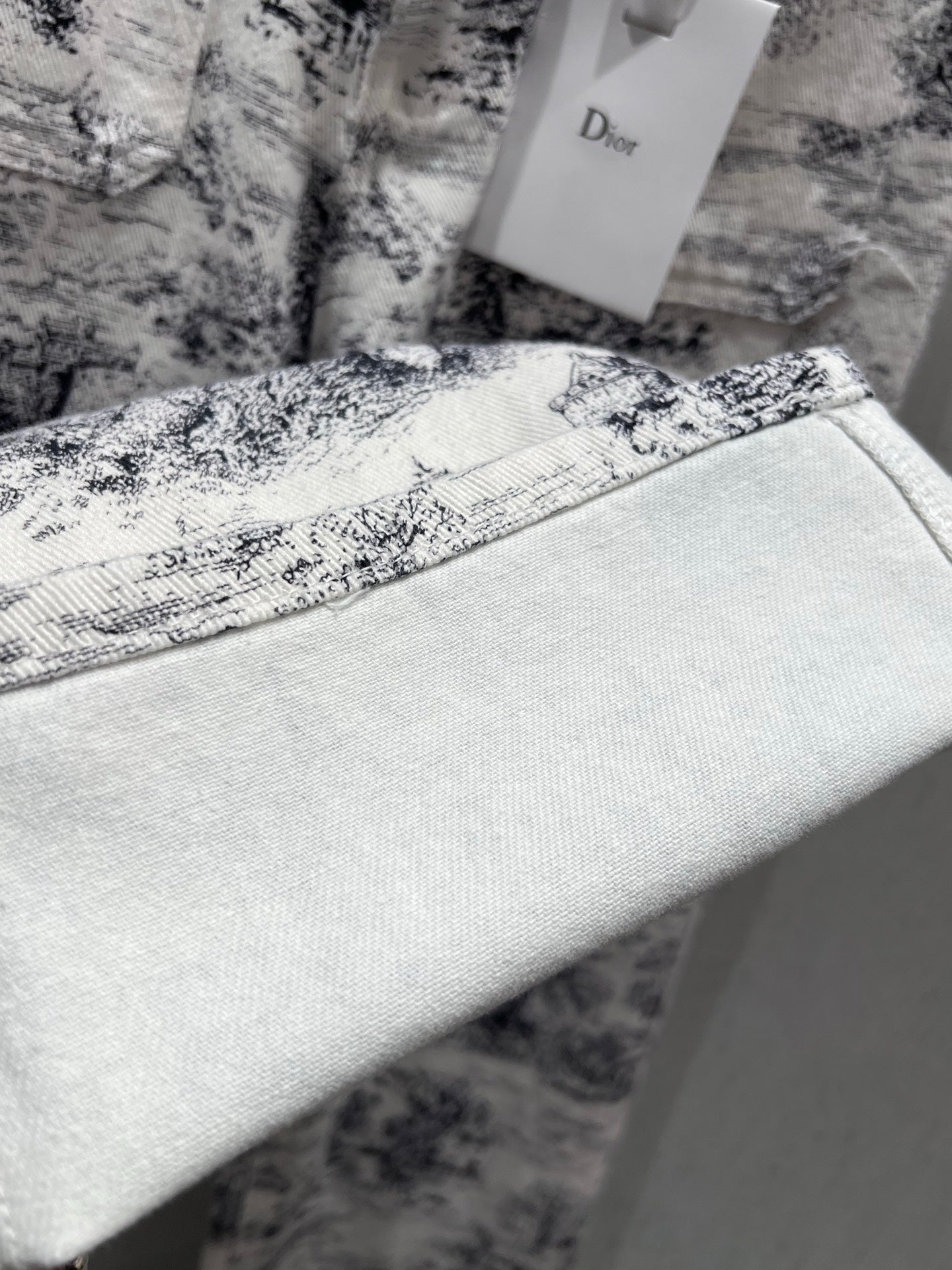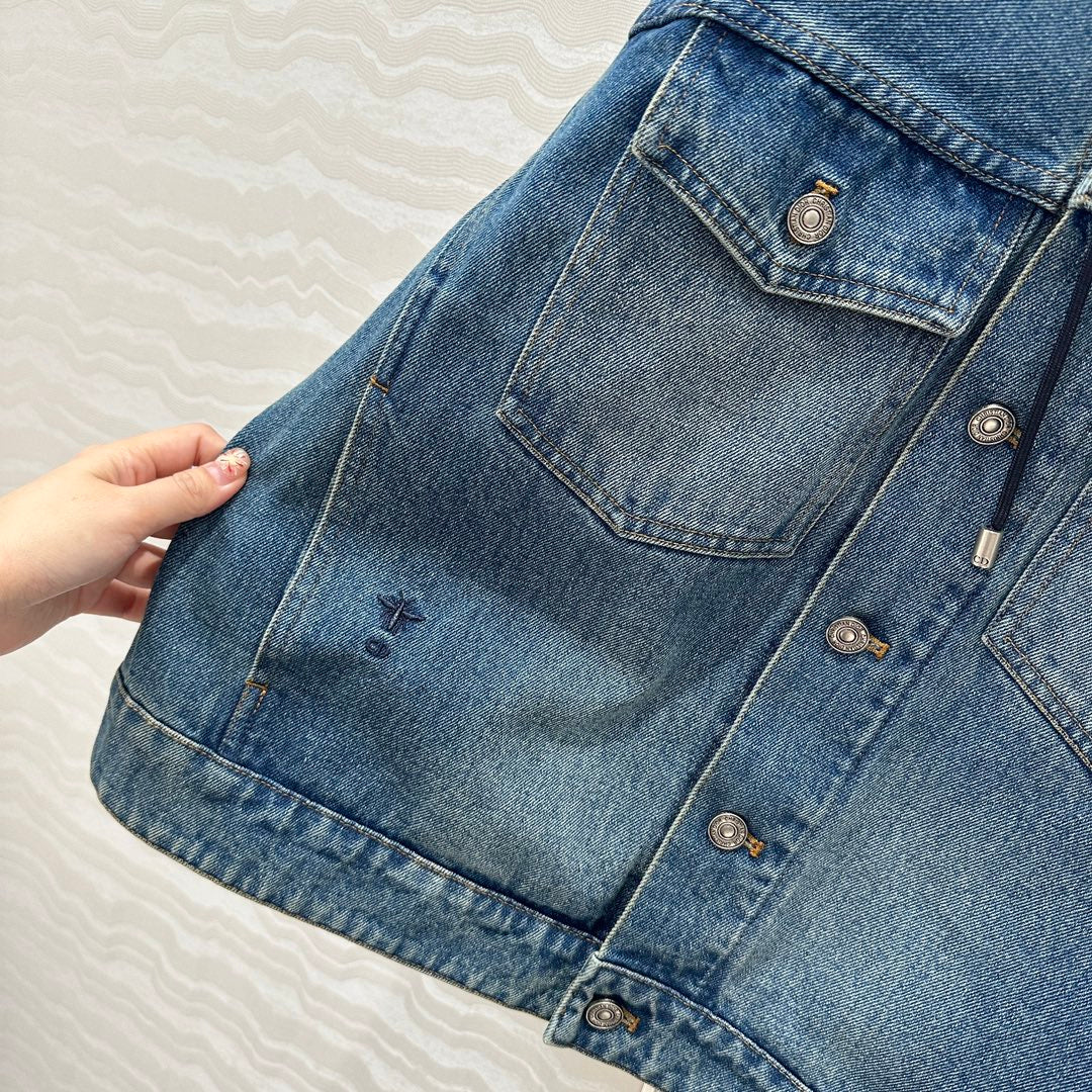 CD Hooded Denim Jacket With Monogram Lining White Beige Cotton