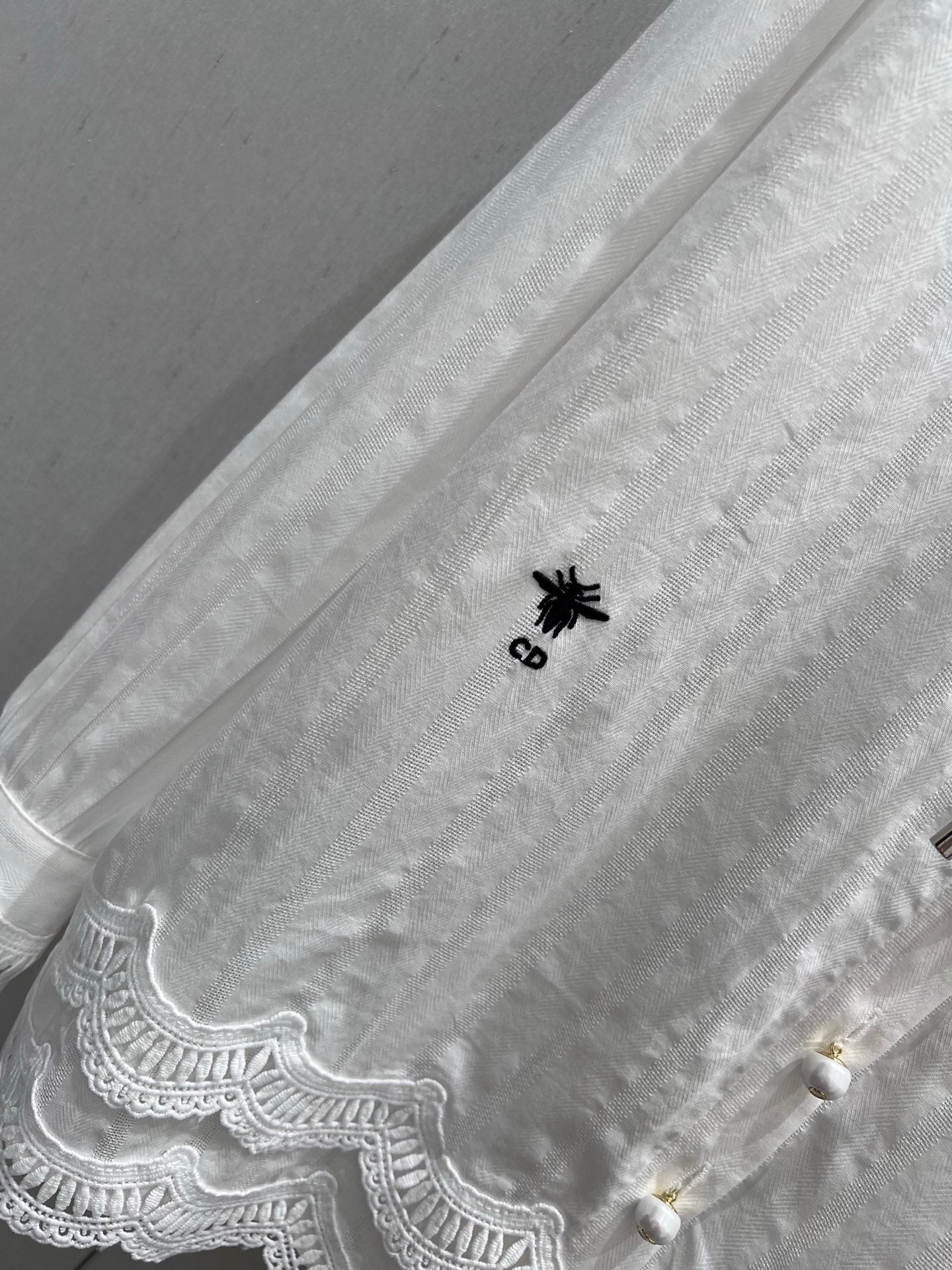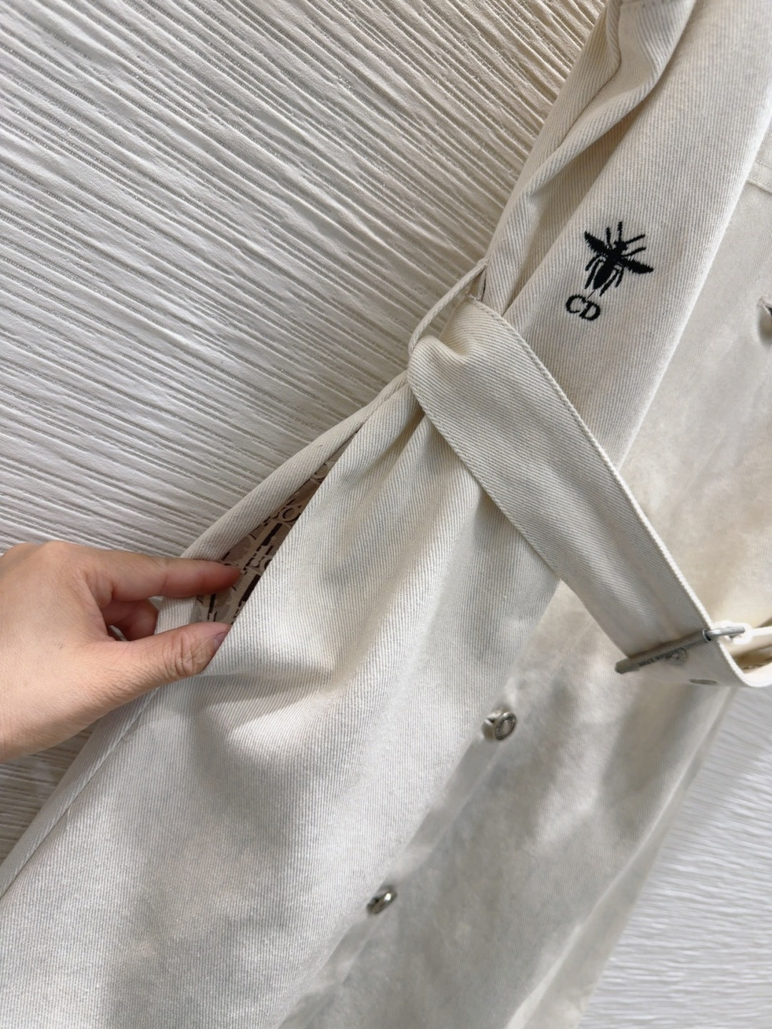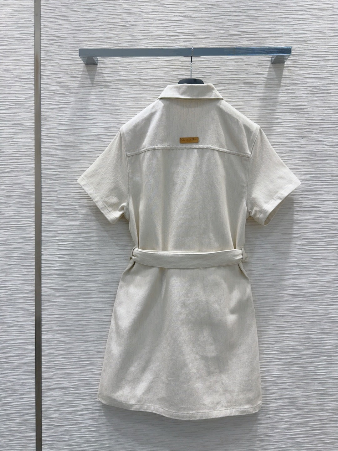 CD 2025 Short-sleeved Shirt Dress Light Beige Cotton
