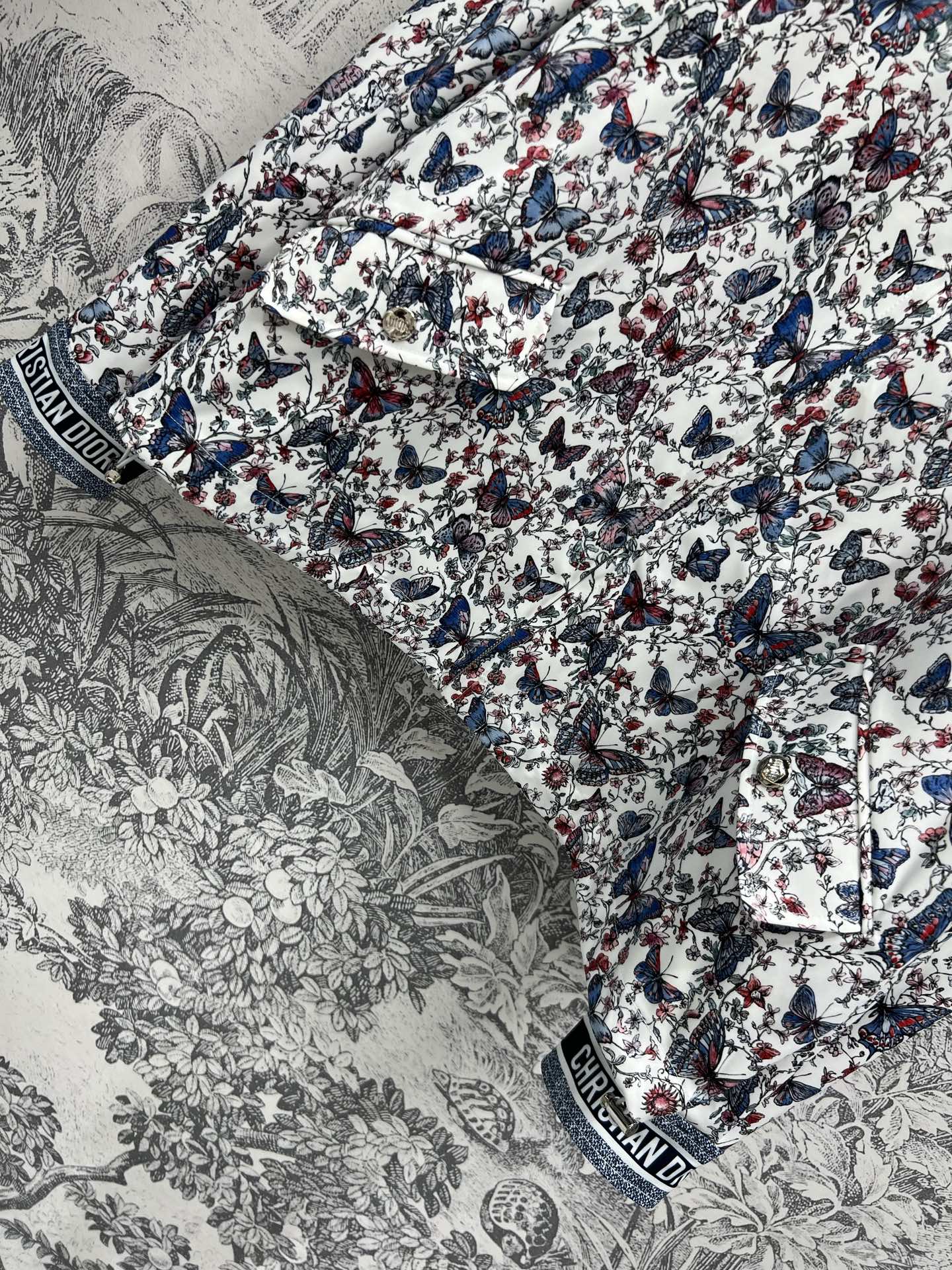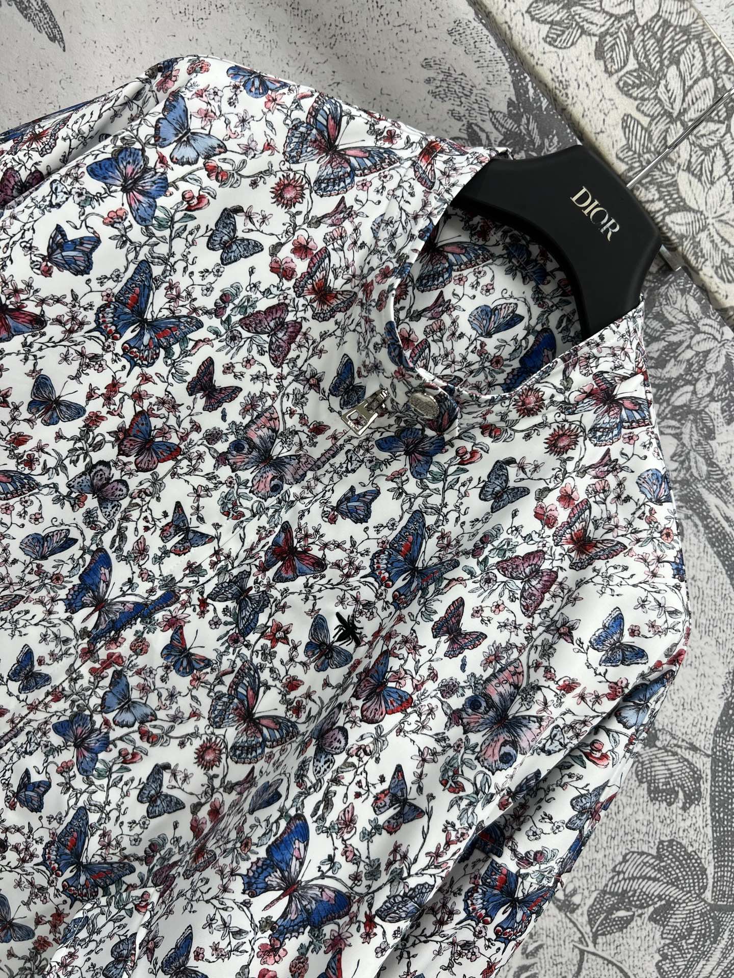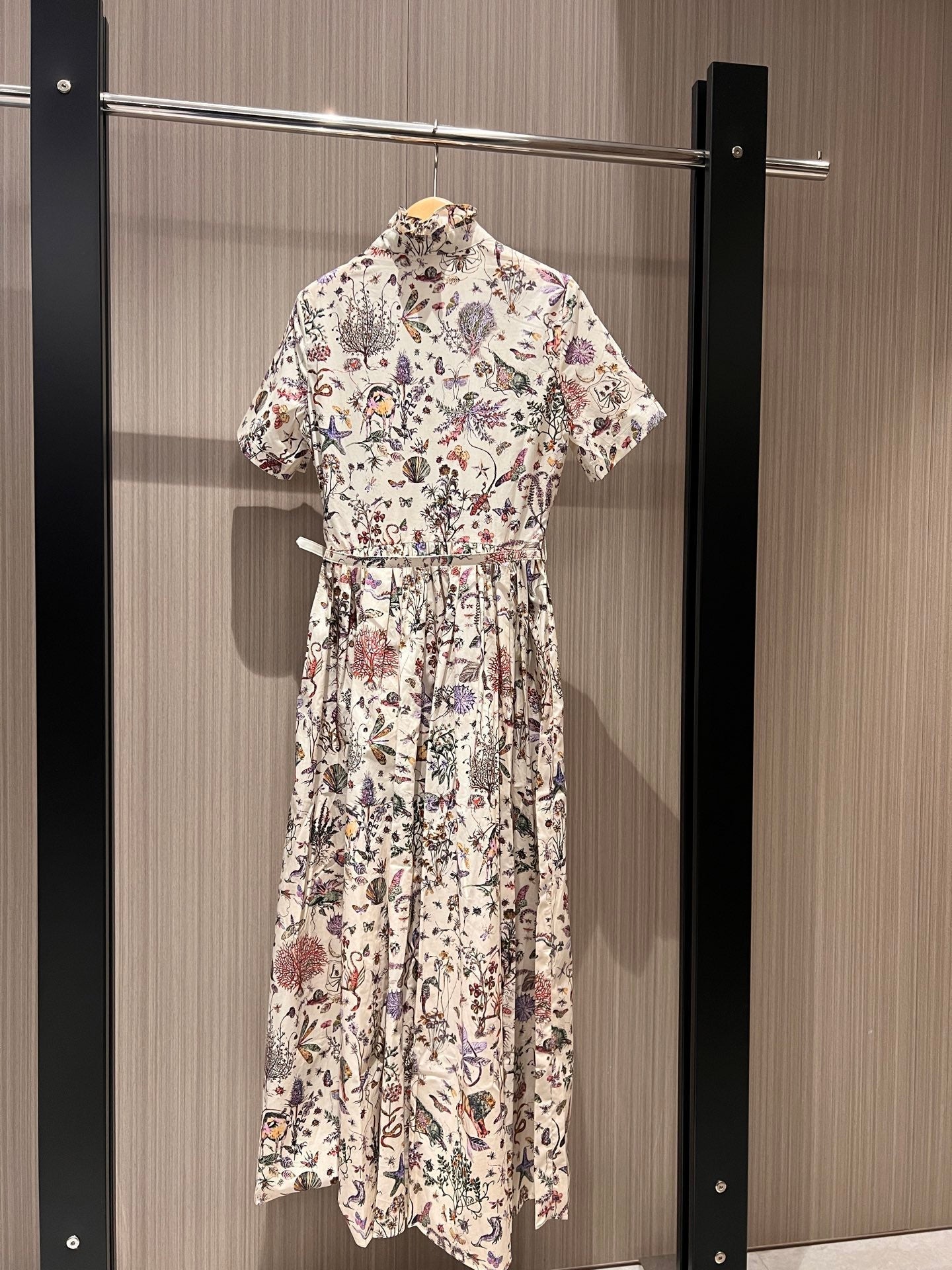 CD 2025 Short-sleeved Shirt Dress Light Beige Cotton