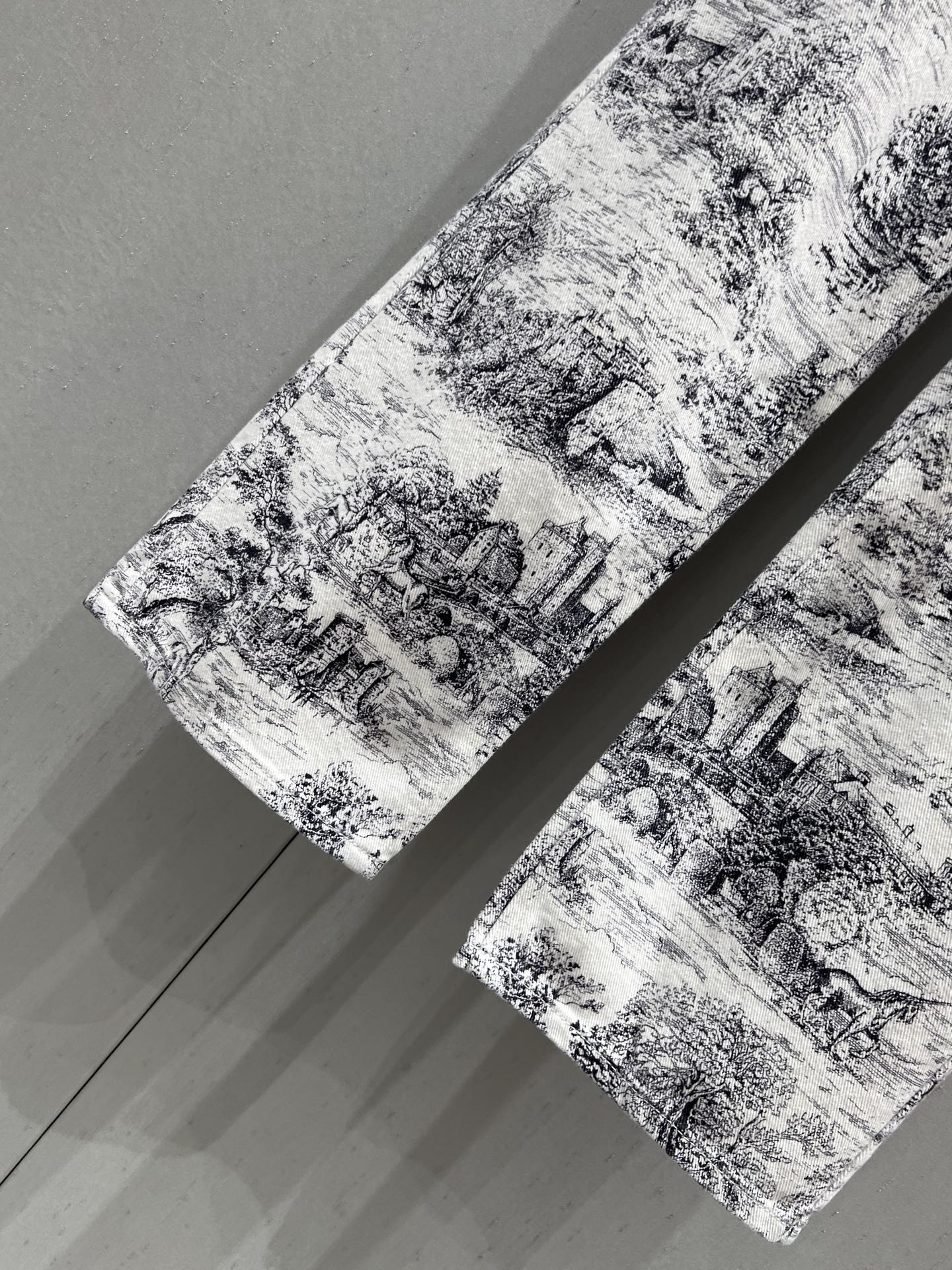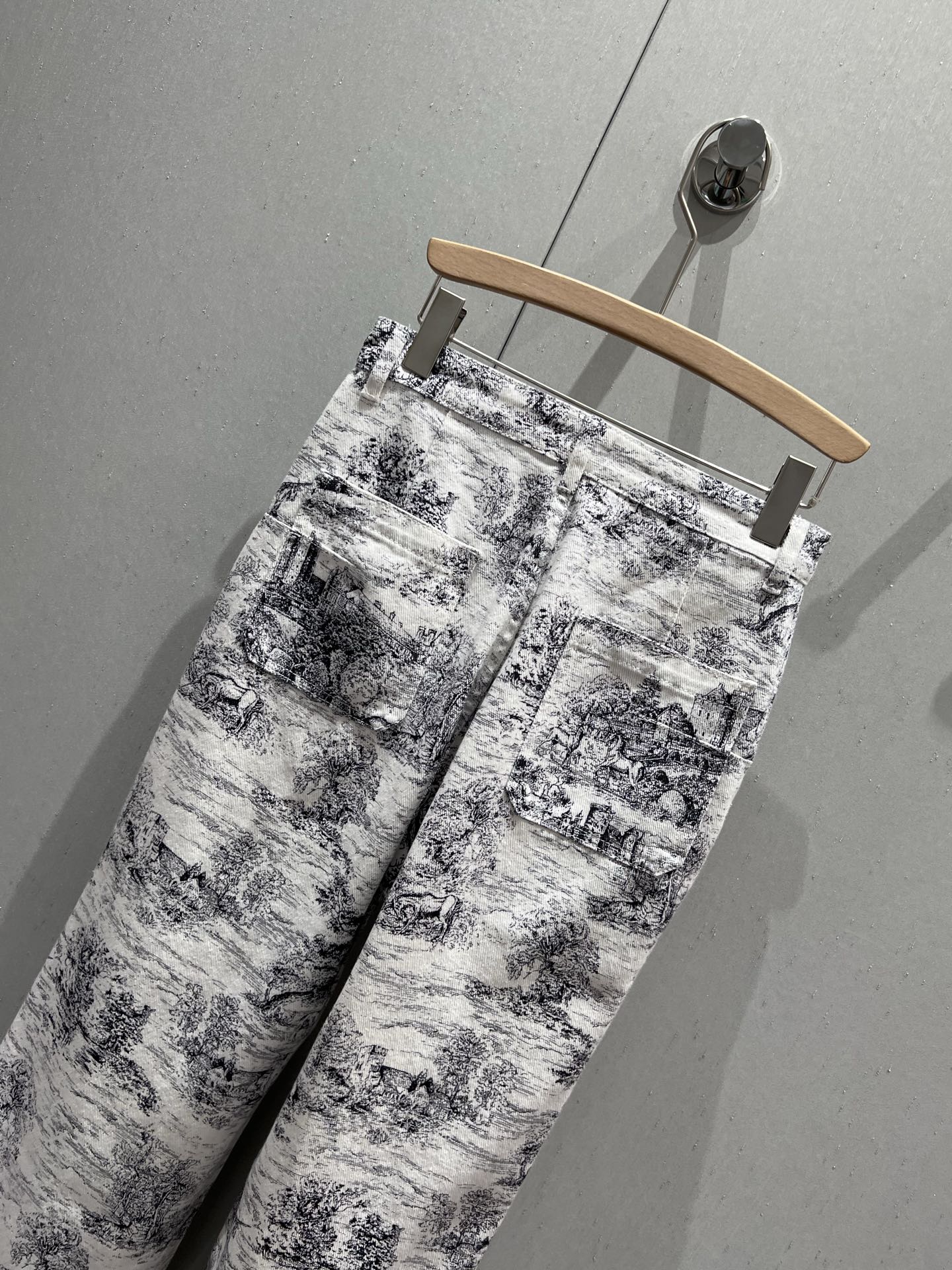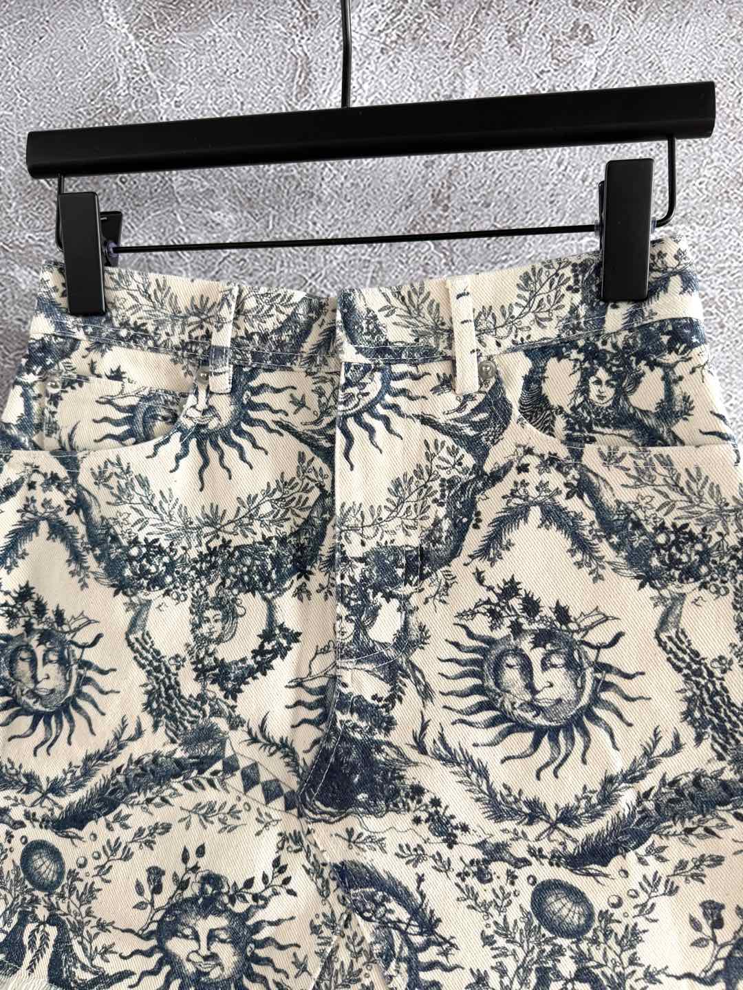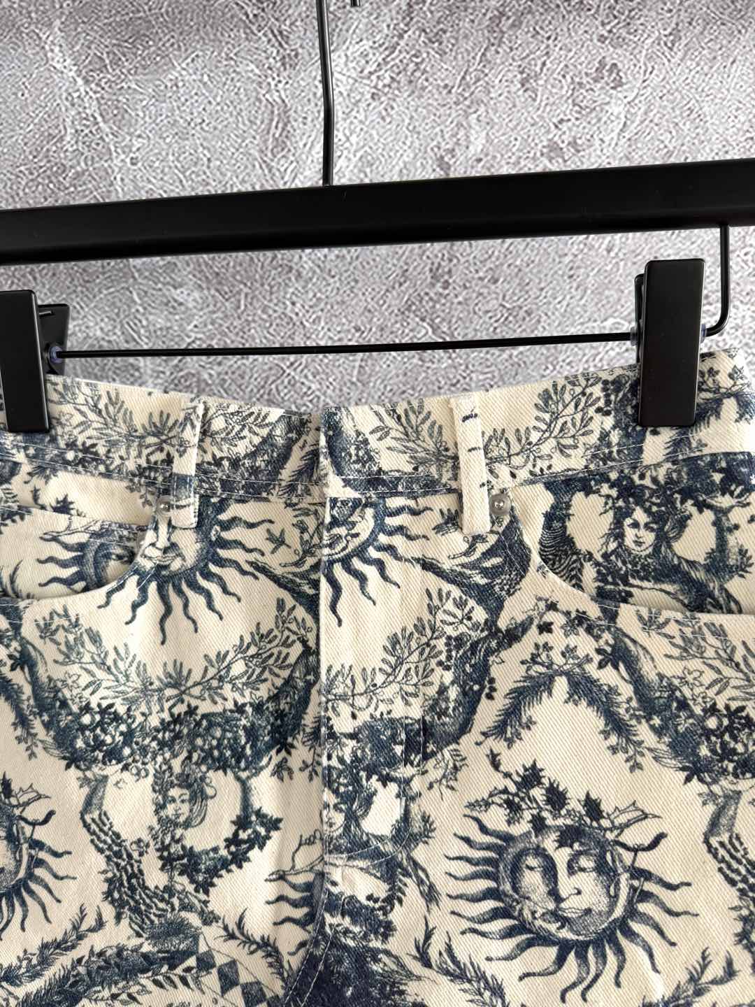 CD Sun God Printed Wide Leg Pants Beige Blue Cotton