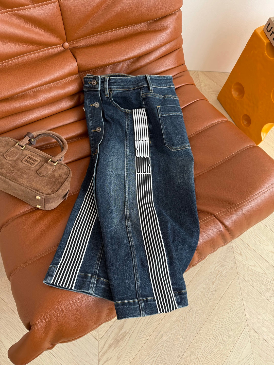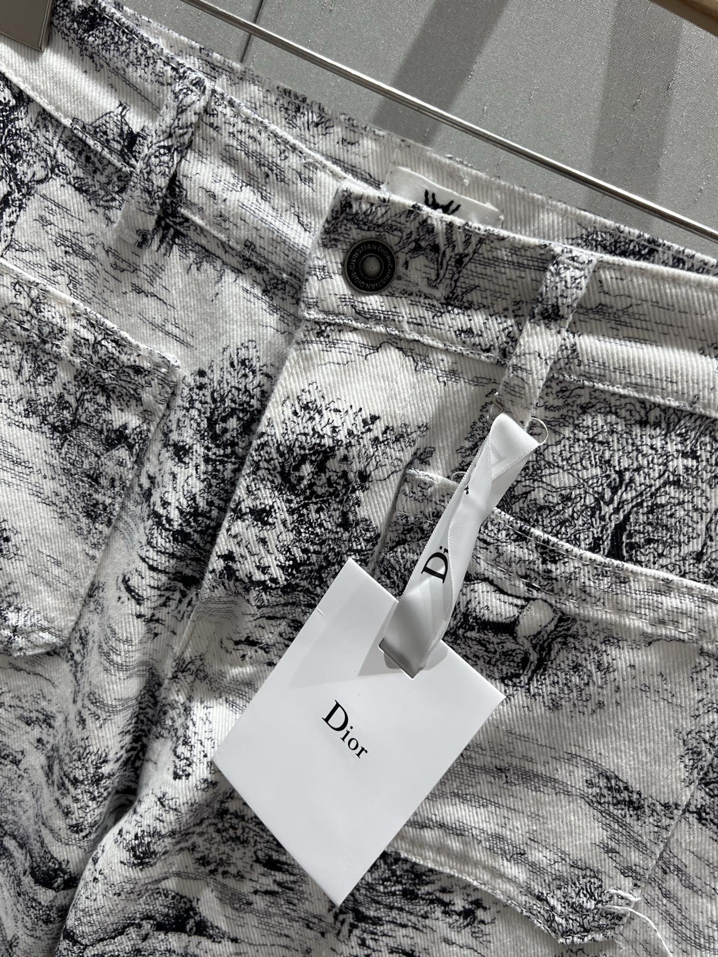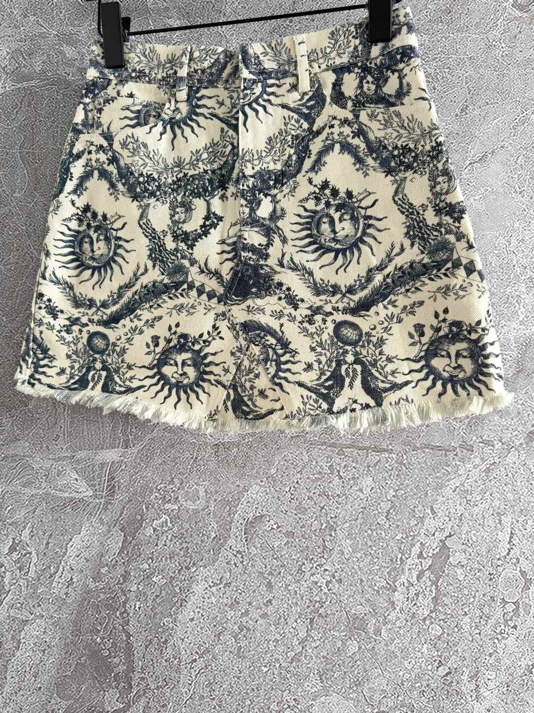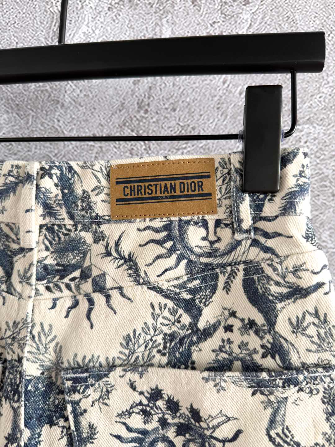 CD Sun God Printed Wide Leg Pants Beige Blue Cotton