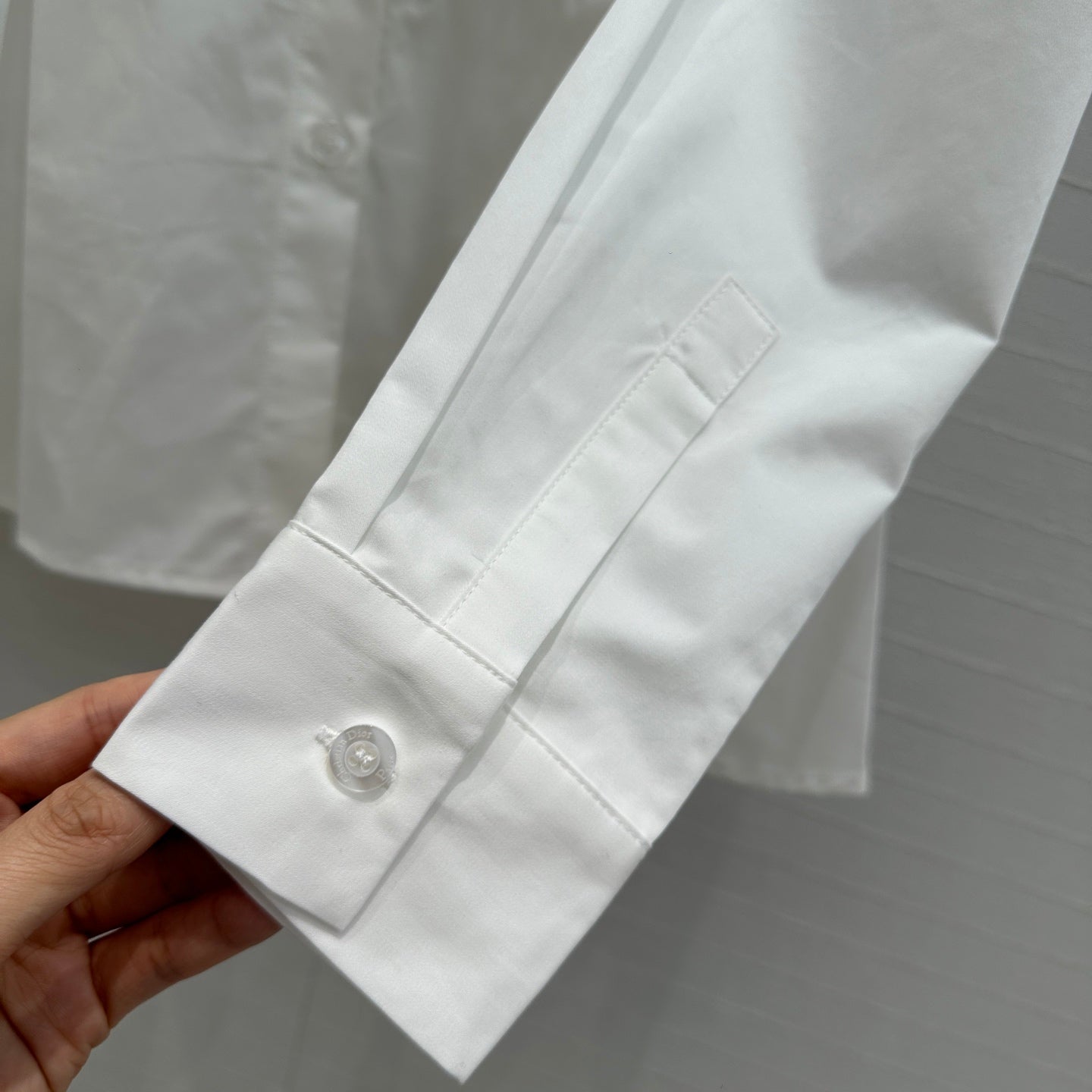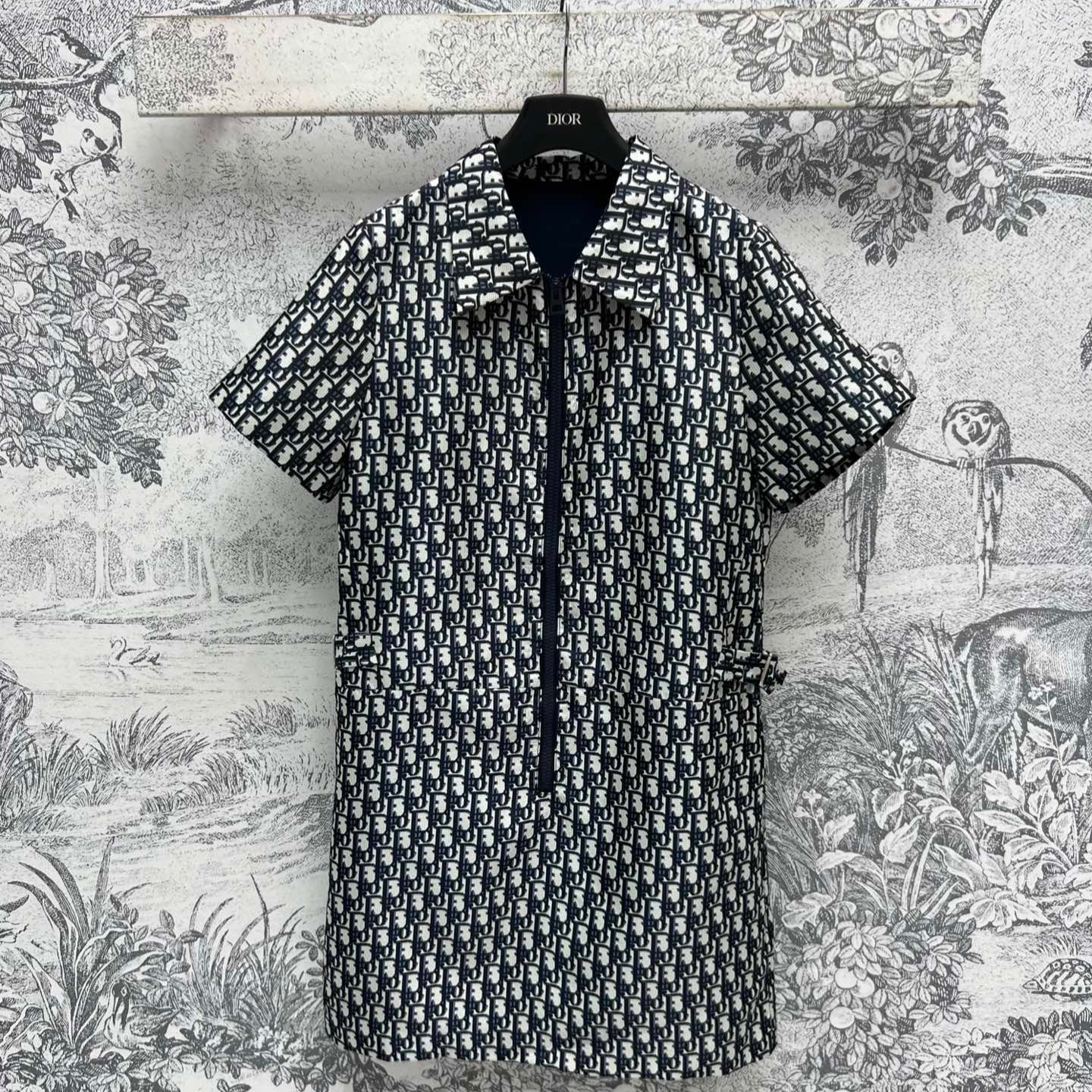 CD 2025 Floral Short-sleeved Belt Shirt Dress Black mix White Cotton