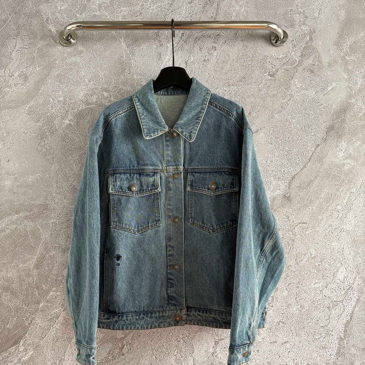 CD Ripped Straight Hooded Jacket Blue Cotton