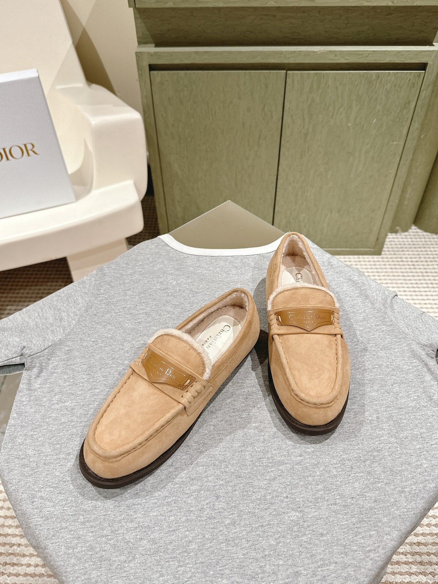 CD Loafers In Beige Brown Suede And Fleece Lining 109295