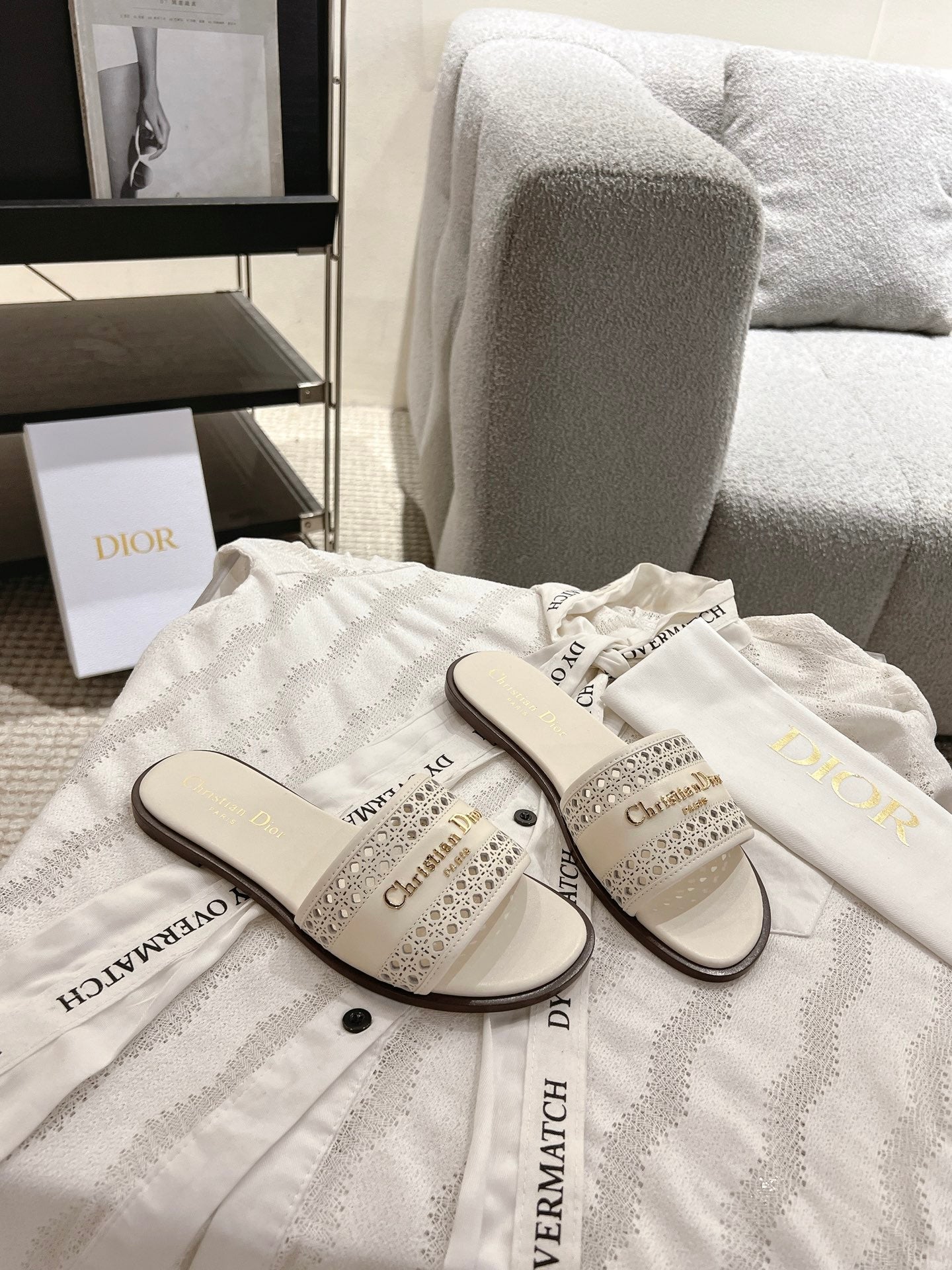 Dior 25 D-Club Slide Sandal White Calfskin 330322