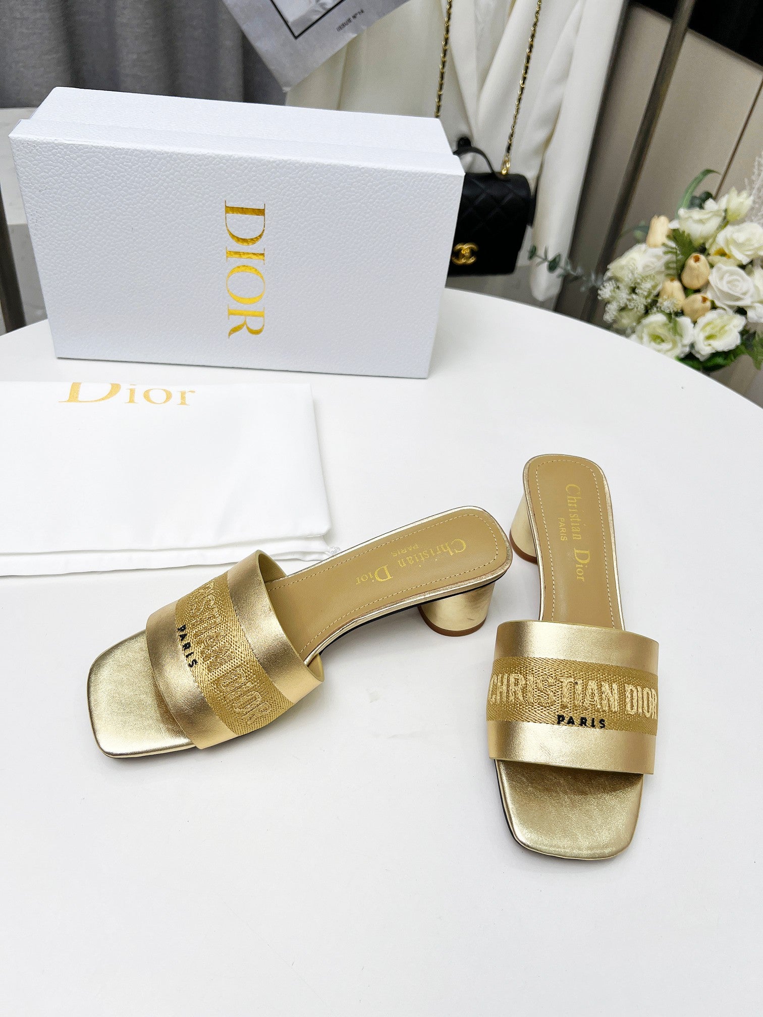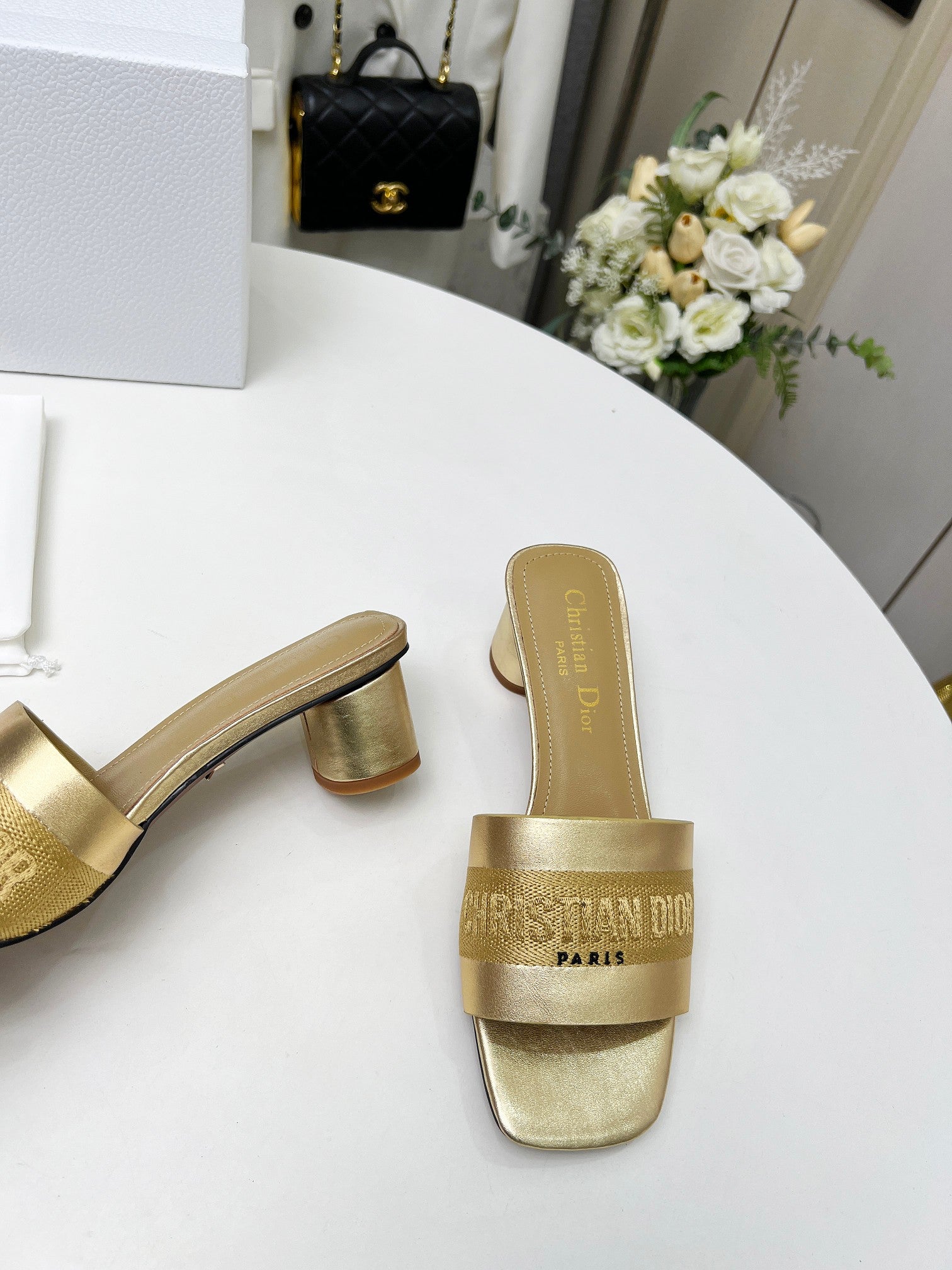 CD 25 D-Lane Heeled Slide Double Strap Calfskin