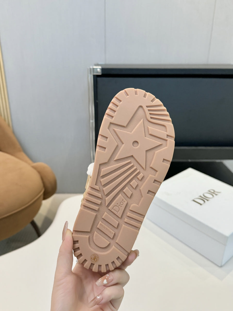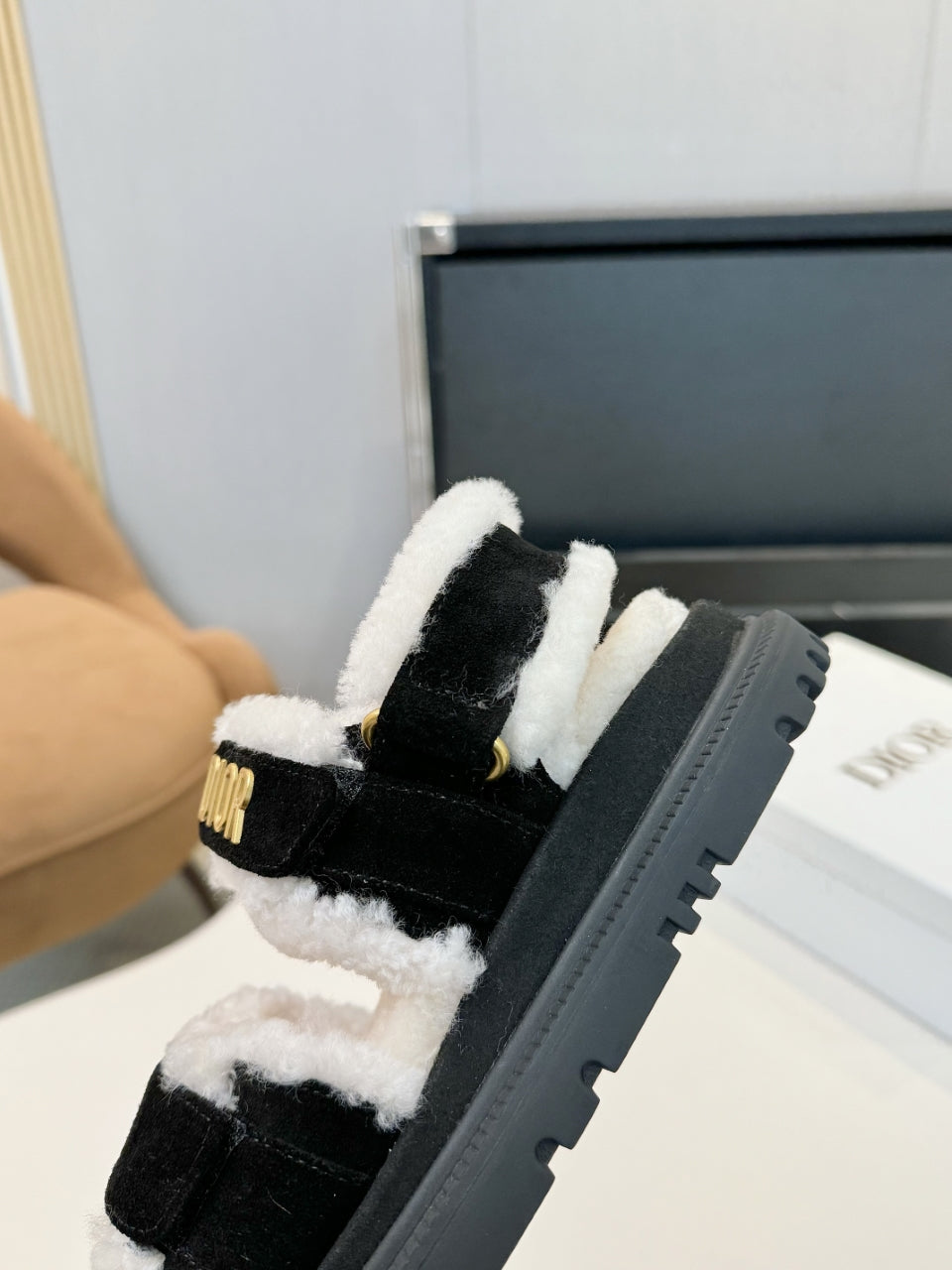 CD Dway Platform Slide Beige Brown Fabric with Lambskin 242442