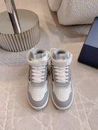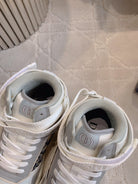 CD B27 High-Top Sneaker White Grey Print Calfskin And Oblique Jacquard Fabric