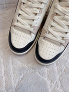 CD B57 Mid-Top Sneaker White Beige Mix Black Calfskin And Oblique Jacquard