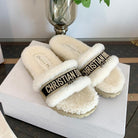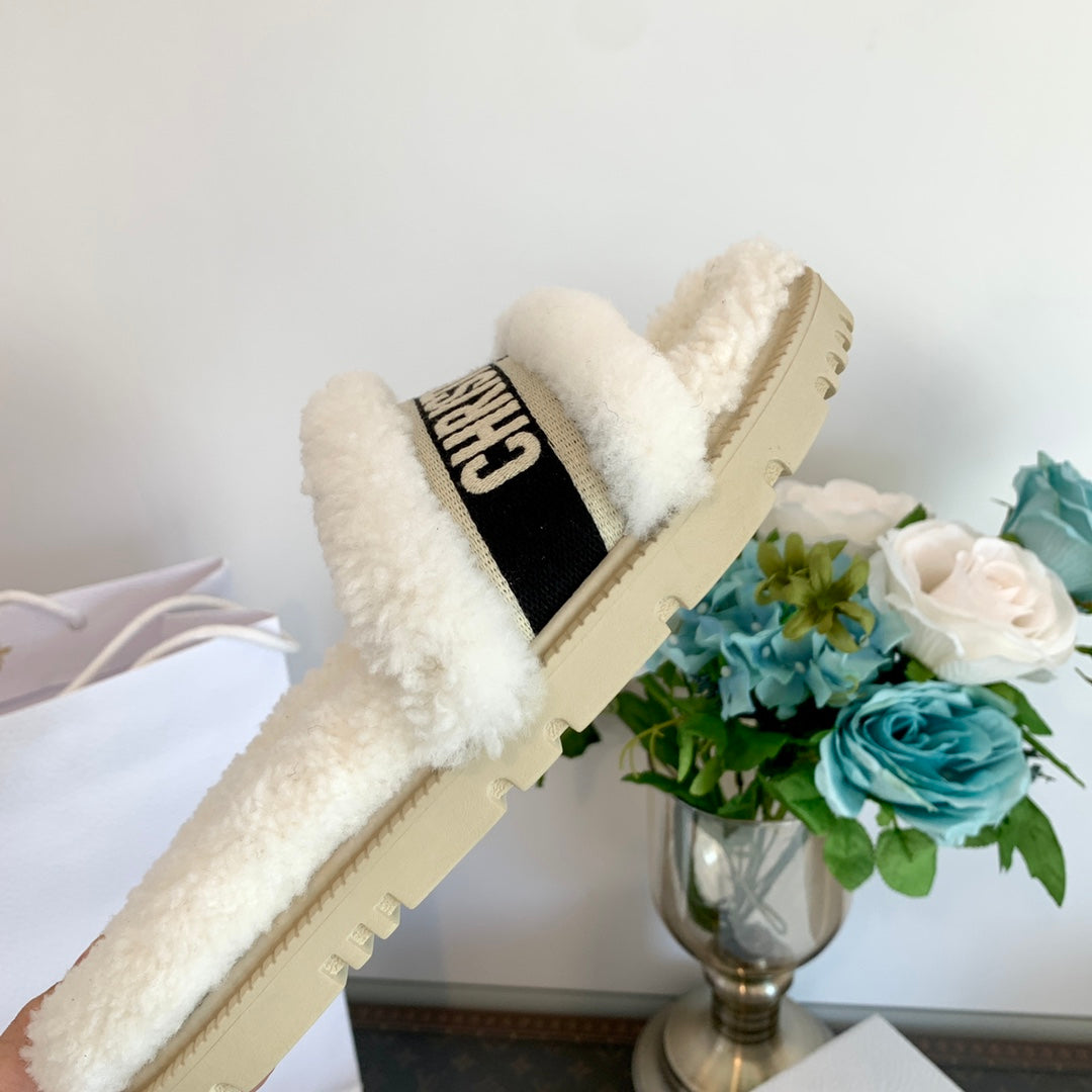 CD Dway Slide Black White Fleece Lining And Canvas Fabric