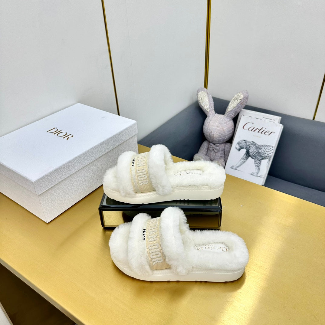 CD Dway Slide In White Mix Beige Wool Fleece Lining And Canvas Fabric 111083