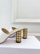 CD Icon Heeled Slide 80mm White Calfskin