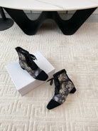 CD Naughtily-D Heeled Ankle Boot Black Mix Yellow Blue Transparent Mesh Butterfly And Suede