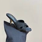 CD Tribales Heeled Slide 80mm Black Lambskin And Studded With Stones