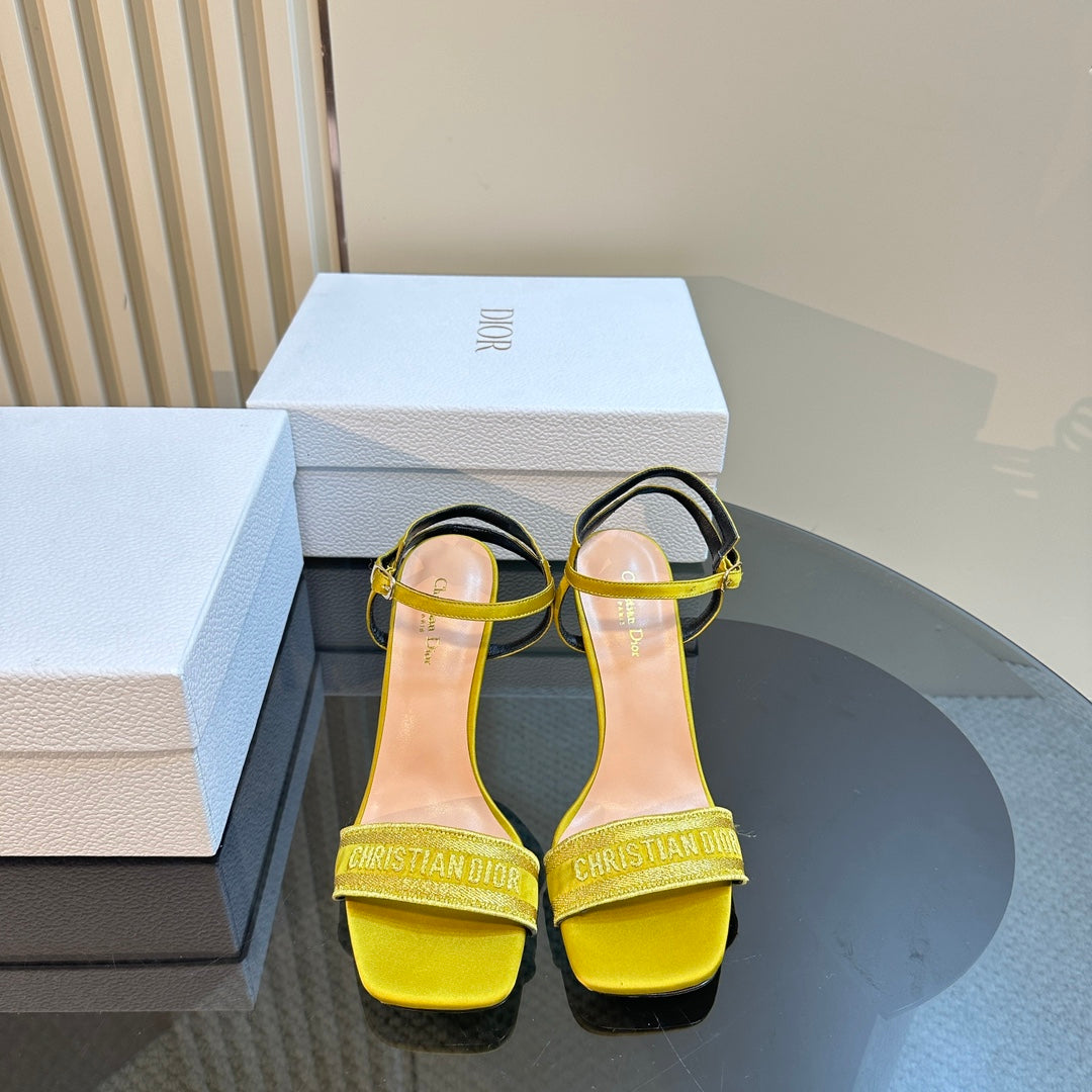 CD Dway Heeled Sandal 105mm Yellow Silk And Lambskin