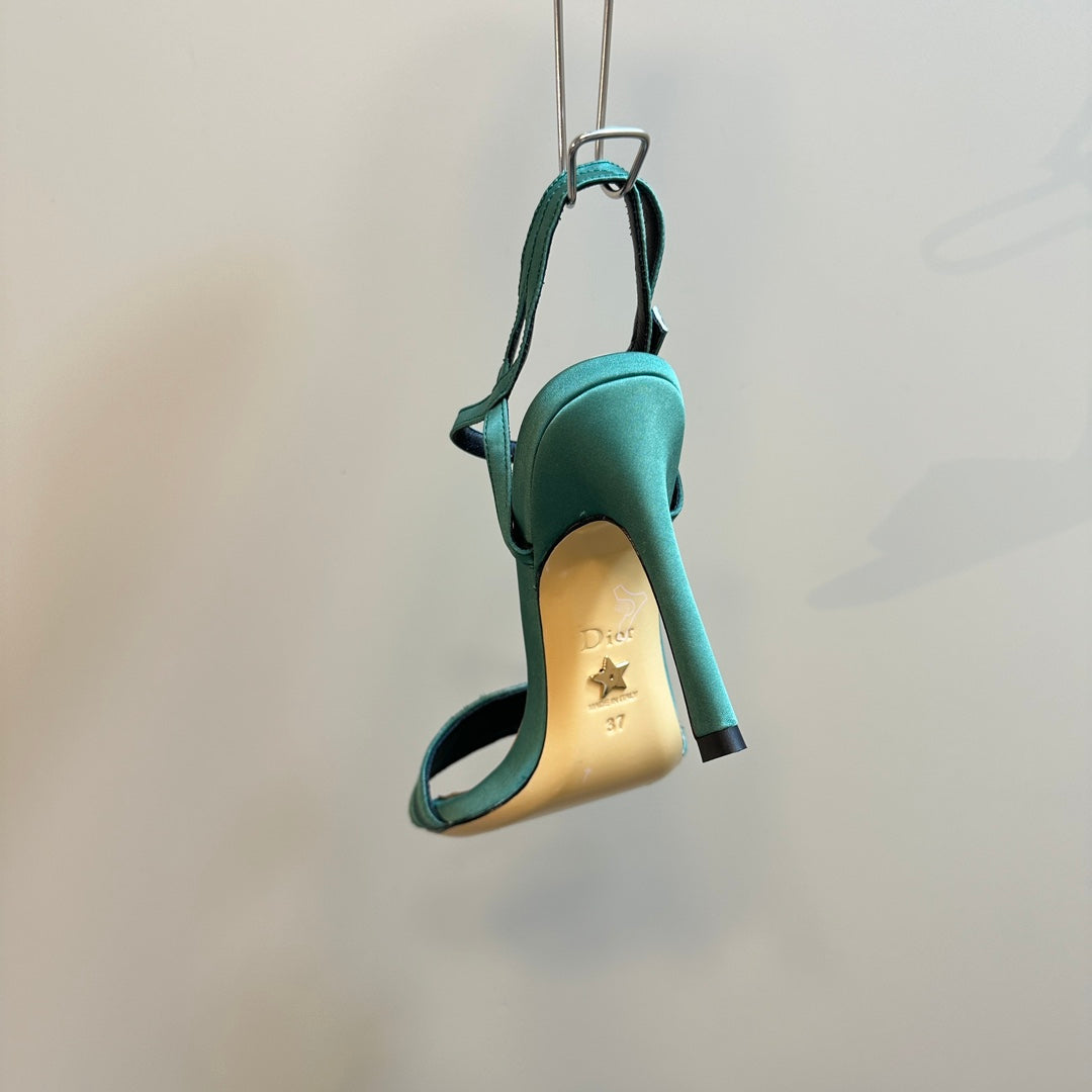 CD Dway Heeled Sandal 120mm Green Silk And Lambskin