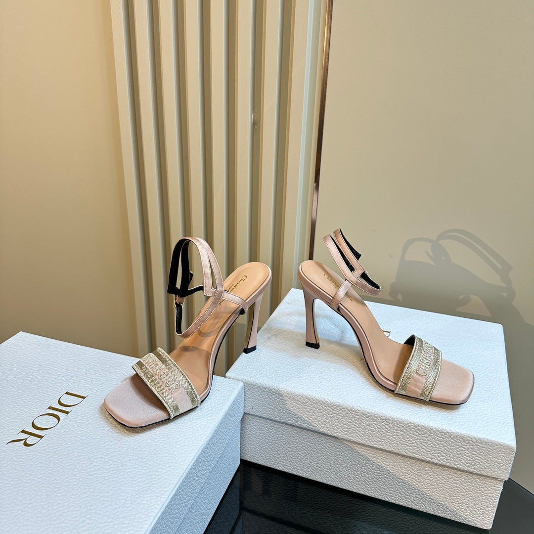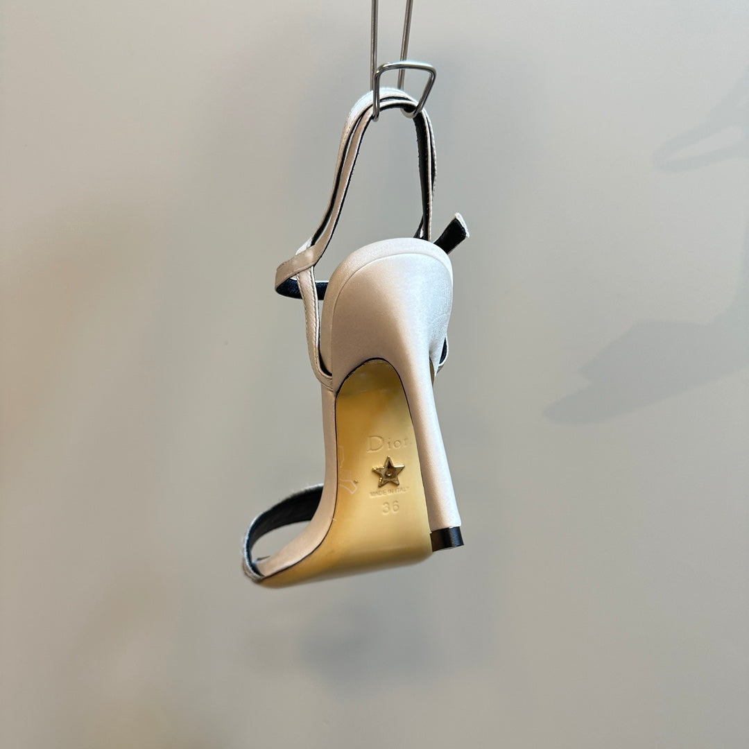 CD Dway Heeled Sandal 105mm Beige Silk And Lambskin