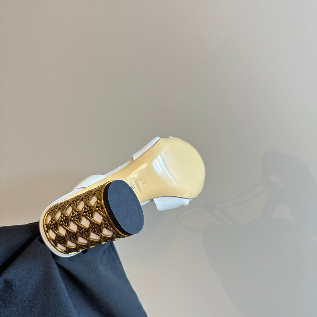 CD Icon Heeled Slide 95mm White Calfskin