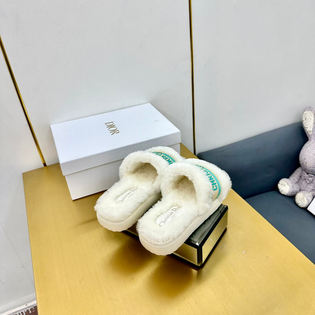 CD Dway Slide In White Mix Beige Wool Fleece Lining And Canvas Fabric 111083
